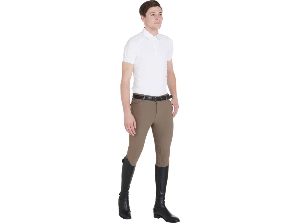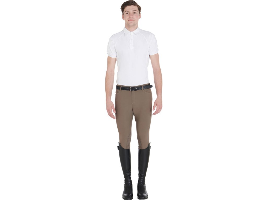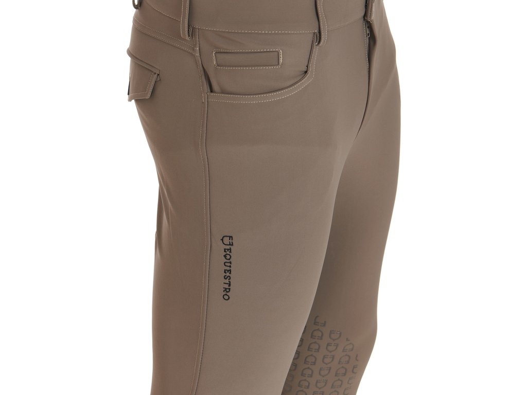 Vysokokvalitné pánske rajtky vyrobené z technickej tkaniny, veľmi elastické a priedušné. Vybavené protišmykovým silikónovým gripom na kolenách, ktorý zaisťuje stabilitu a priľnavosť k sedlu. Dokonale sedia a zaručujú maximálnu voľnosť pohybu. Vybavené prednými vreckami. Zdobené logom Equestro. Elastické lycra zakončenie uľahčuje ich obliekanie a vyzliekanie.