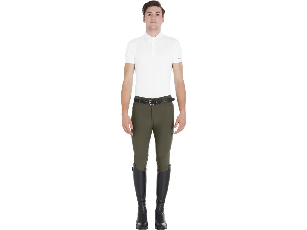 Vysokokvalitné pánske rajtky vyrobené z technickej tkaniny, veľmi elastické a priedušné. Vybavené protišmykovým silikónovým gripom na kolenách, ktorý zaisťuje stabilitu a priľnavosť k sedlu. Dokonale sedia a zaručujú maximálnu voľnosť pohybu. Vybavené prednými vreckami. Zdobené logom Equestro. Lycrová vložka na členku umožňuje dokonalé uchytenie a poskytuje skvelú priedušnosť.