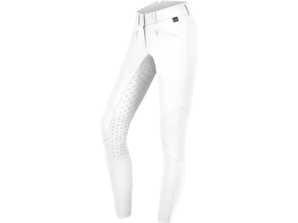 Kvalitné jazdecké rajtky so silikónovým protišmykovým gripom celej dĺžke sedu. Vysoký pás pre maximálne pohodlie pri nosení. Vyrobené z veľmi priedušného a pohodlného materiálu, osvedčené mikrovlákno, materiál odolný voči dažďu. Elastické manžety, kontrastné vrecká na zips vpredu a vzadu, pútka na opasok.