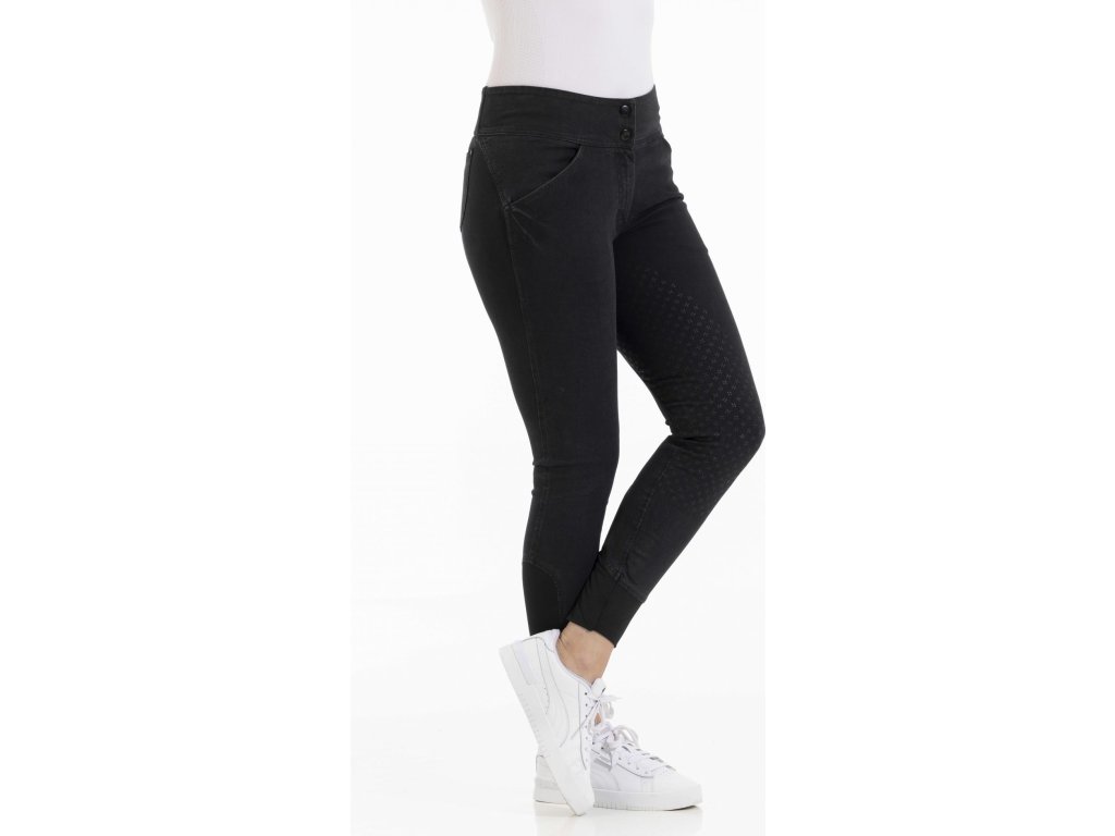 Stylové jezdecké rajtky v denim designu. Jsou vybaveny silikonovým gripem po celé délce sedu. Lehký a pružný materiál s moderním střihem nabízí pohodlí a volnost pohybu, elastická lycra na nohavicích zajišťuje snadné oblékání a svlékání. Mají vyšší pas a přední kapsy. Lze je prát v pračce na 30 °C.
