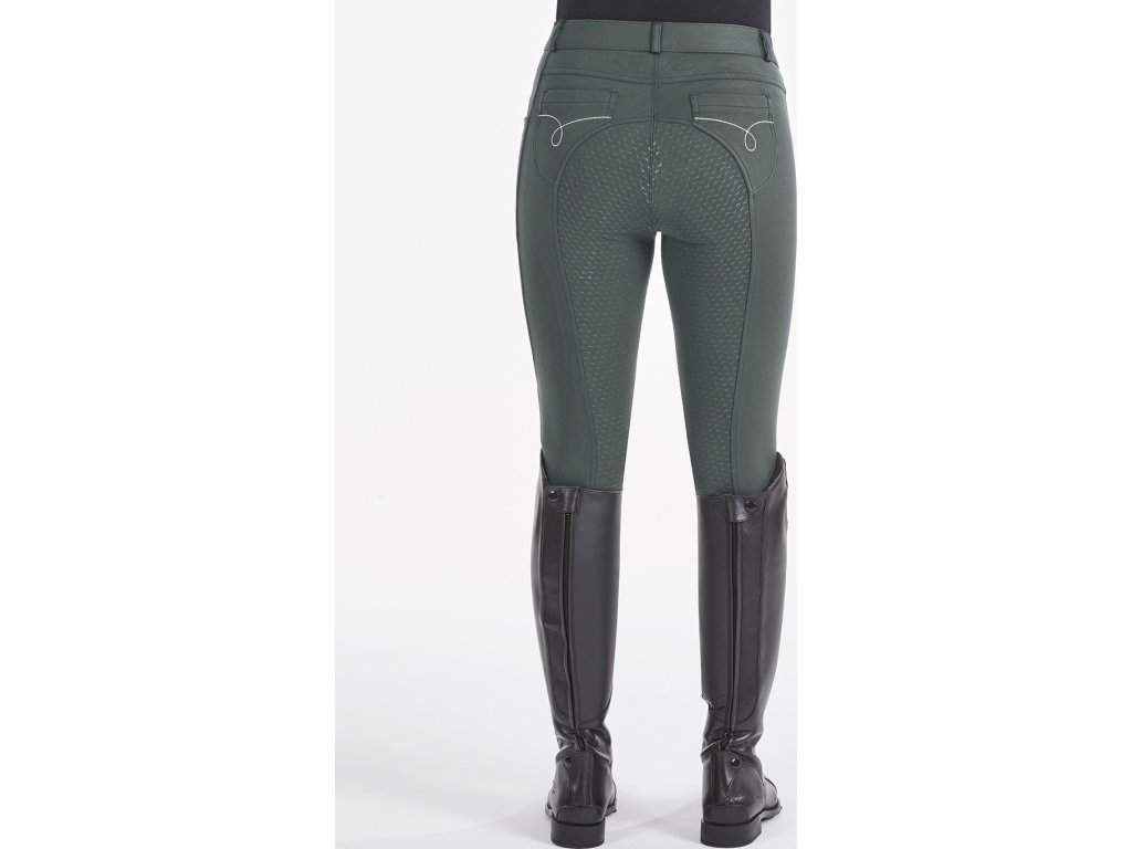 Zateplené jazdecké dámske nohavice vyrobené z odolného a hrejivého funkčného materiálu. Jedno predné vrecko na zips a dve zadné vrecká zdobené bielymi švami. Štrbinové vrecko na ľavom boku stehna (vhodné na smartfón). Klasický strih so stredne vysokým a elastickým pásom. Pohodlné nohavice s elastickou vložkou. Silikónový protišmykový grip po celej dĺžke sedu. Možno prať v práčke pri 30 °C. K dispozícii sú aj predĺžené veľkosti.