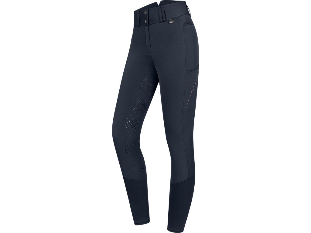 Zateplené dámske jazdecké rajtky s vysokým pásom a gripom po celom sede. Grip zaistí výbornú priľnavosť k sedlu a nekĺže. Elastické konce nohavíc sú pohodlné a netlačia. Vďaka materiálu Thermo-Softshell poskytujú skvelý tepelný komfort a odolnosť voči vode, pričom si zachovávajú elasticitu a dokonale sedia. Sú vhodné na chladné dni. Vybavené dvoma vreckami na mobilný telefón.