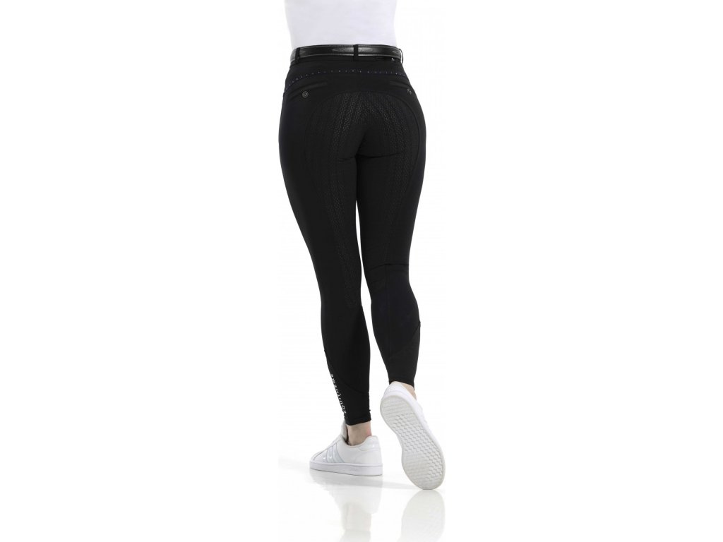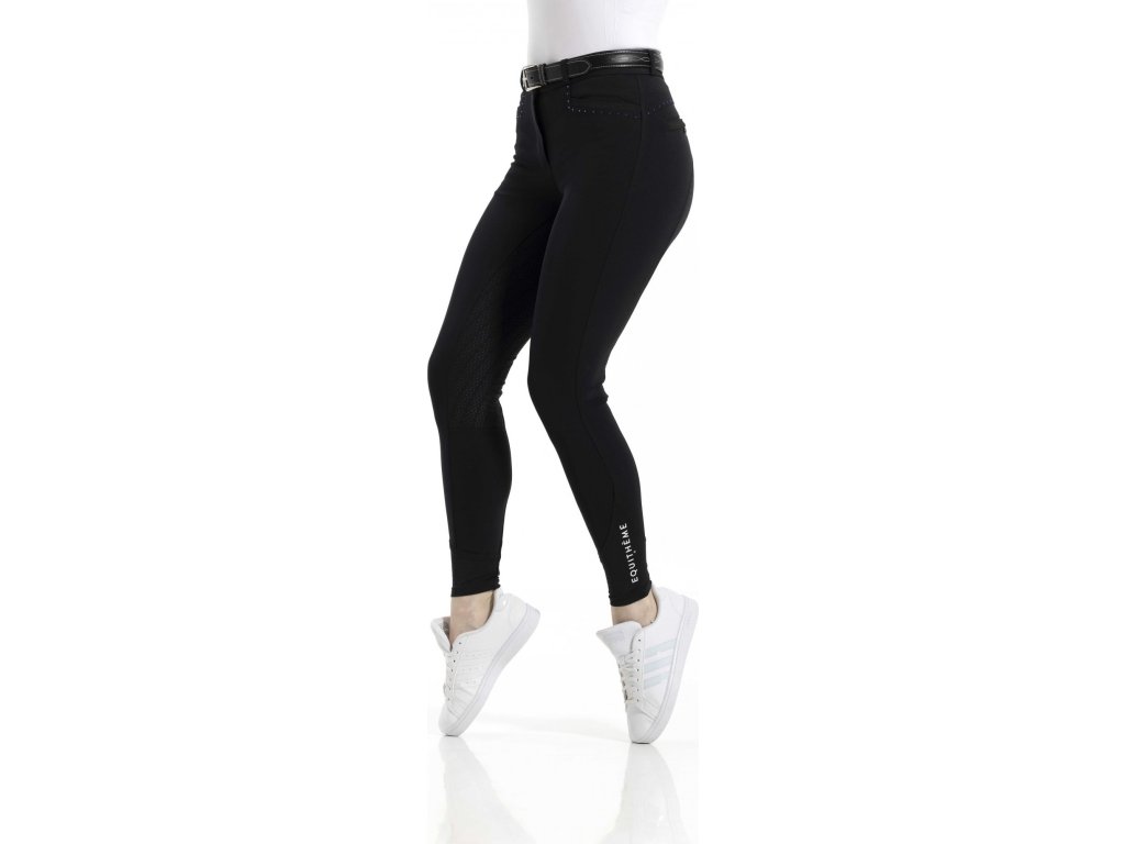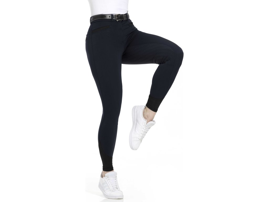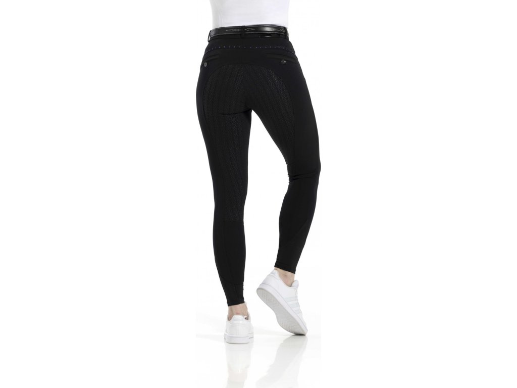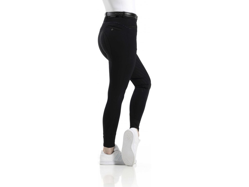Štýlové jazdecké rajtky, ktoré spájajú elegantný dizajn s funkčnými detailmi. Odolný a pružný materiál zaisťuje perfektné prispôsobenie postave, voľnosť pohybu a celodenný komfort. Silikónový grip pozdĺž celého sedu zaručuje skvelú priľnavosť v sedle. Predné a zadné švy sú vkusne zdobené kamienkami. Možno prať v práčke pri 30 °C.
