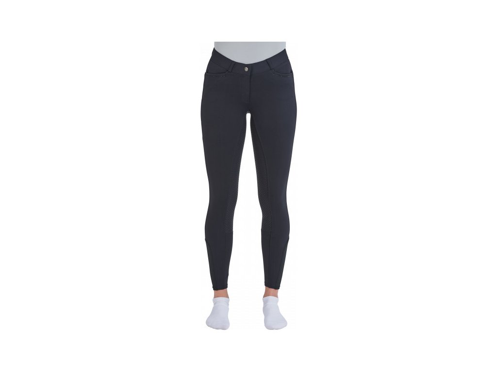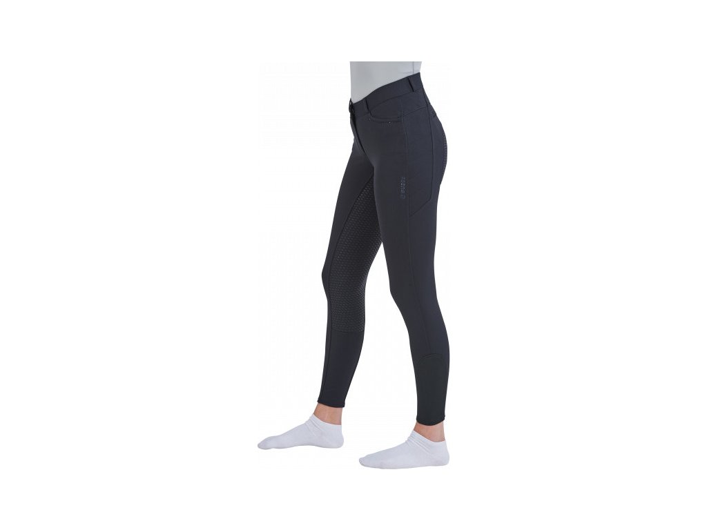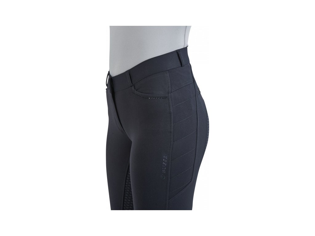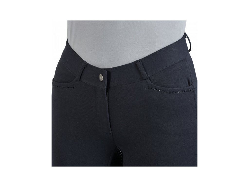 Zateplené jazdecké nohavice vyrobené z odolného a teplého funkčného materiálu. Nohavice sú na bokoch zdobené prešívaním. Dve predné vrecká a dve naznačené zadné vrecká zdobené trblietavými kamienkami. Dômyselne skryté a dokonale umiestnené vrecko na smartfón v zadnej časti. Klasický strih so stredne vysokým elastickým pásom a pútkami na opasok s logom značky. Pohodlné konce nohavíc s elastickou vložkou. Silikónový protišmykový grip po celej dĺžke sedu. Možno prať v práčke na 30 °C. K dispozícii sú aj predĺžené veľkosti.