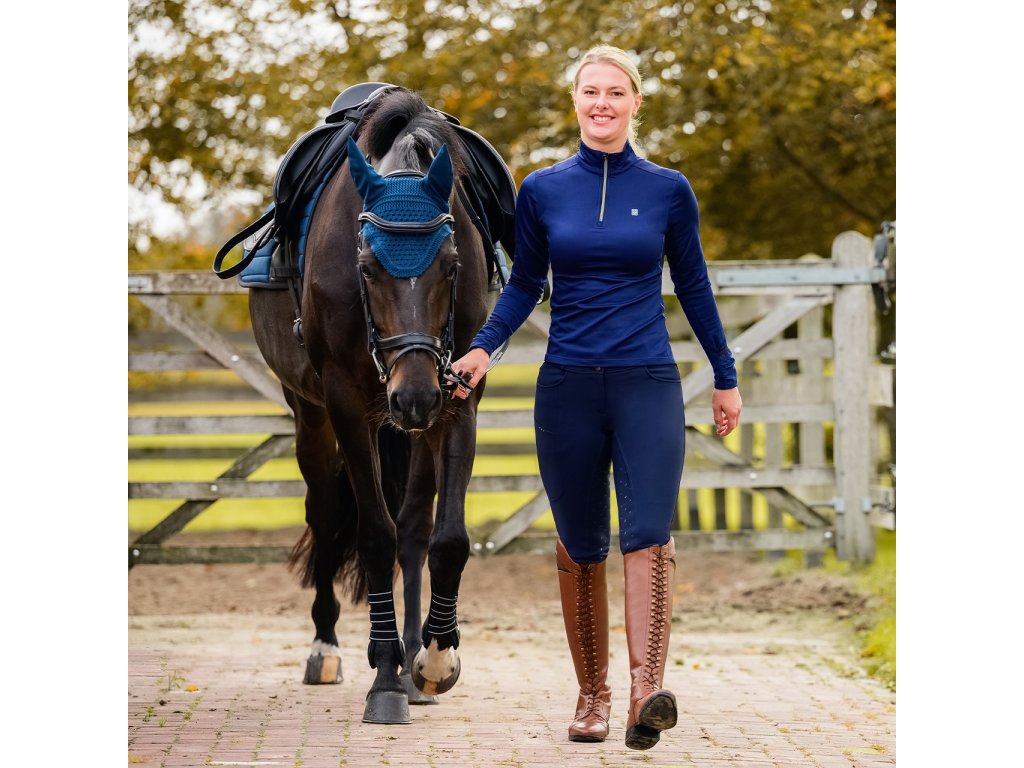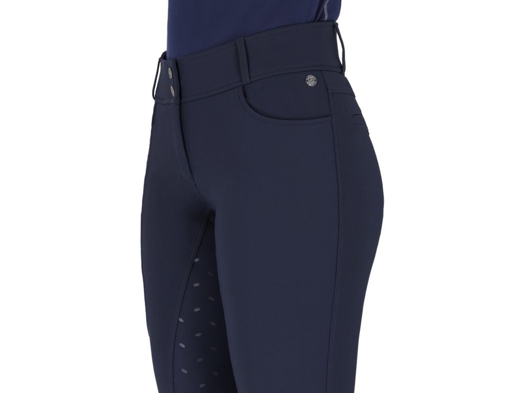 Dámske jazdecké rajtky Lymee sú vyrobené z kvalitného softshellového materiálu. Sú vhodné do chladného zimného počasia vďaka jemne česanej podšívke, ktorá príjemne hreje, je mäkká na dotyk a dobre izoluje teplo. Vonkajší materiál je vodoodpudivý, takže vás ochráni aj v nepriaznivom počasí. Sú vybavené silikónovým gripom po celom sede a vysokým pásom pre pohodlie a elegantný vzhľad. Ďalej majú dve predné vrecká a praktické vrecko na pravej nohavici zdobené tromi kamienkami, ideálne napríklad na telefón. Nechýba ani decentné logo výrobcu a elastické zakončenie nohavíc pre maximálny komfort.