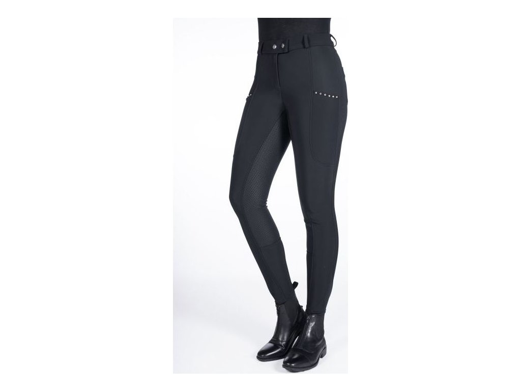 Pohodlné zimné jazdecké rajtky Monaco od značky HKM, ktoré výborne izolujú teplo. Rajtky sú vybavené elastickým zakončením nohavíc, ktoré uľahčuje ich obliekanie a vyzliekanie. Majú silikónový grip po celej dĺžke sedu a pútka na opasok. Predné vrecko na telefón zdobené kamienkami. Možno prať v práčke pri 30 °C a sušiť v sušičke na studenom vzduchu.
