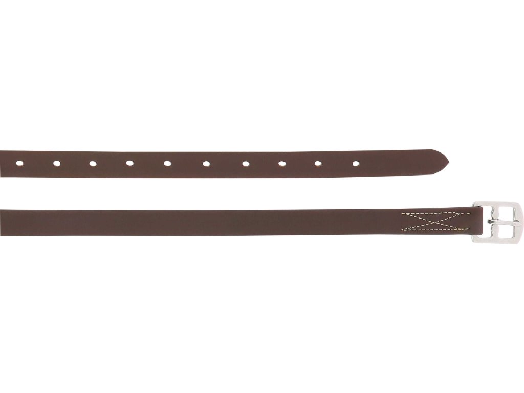 Strmeňové remene z odolného syntetického materiálu s dekoratívnym farebným prešitím nylonovou niťou. Nerezové pracky zaisťujú pevné a bezpečné upevnenie. Dodávané v páre.