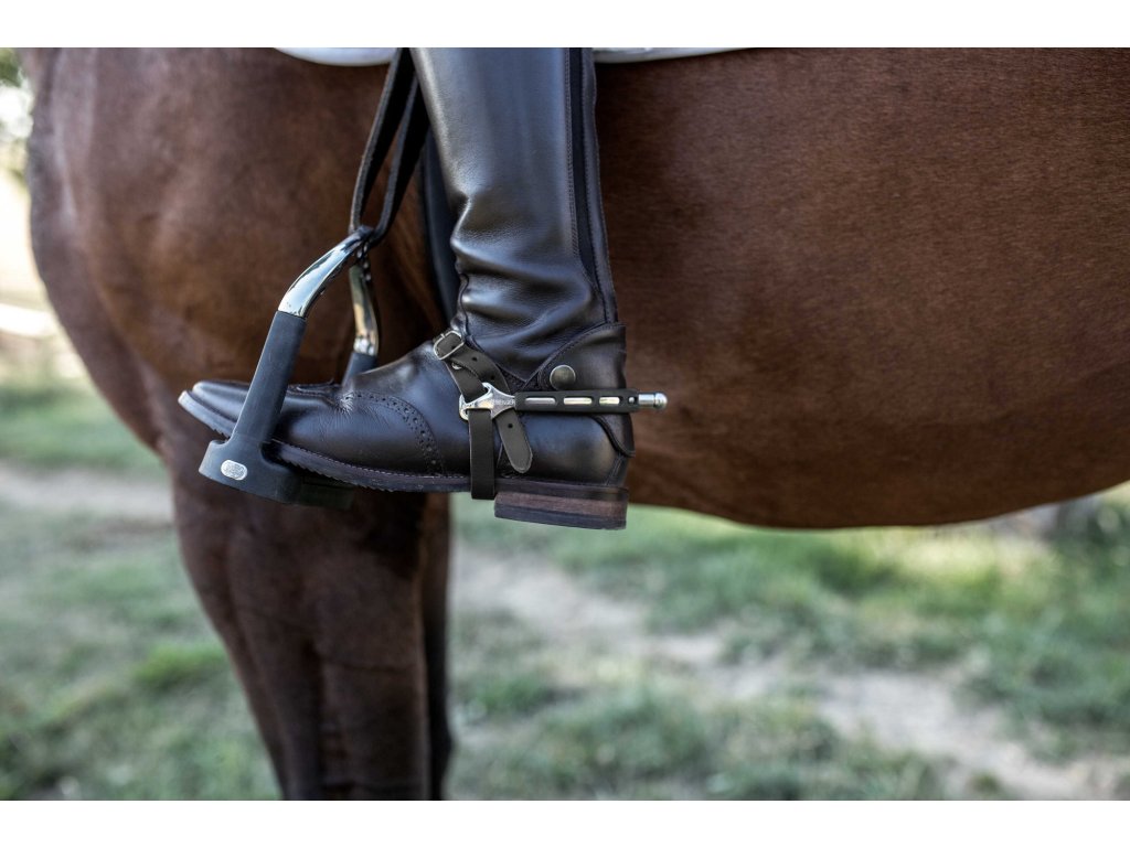 Elegantné remienky k šporniam vyrobené z kvalitnej kože. Materiál je vysoko odolný a mäkký. Vybavené sú prackami z poniklovanej ocele. Predávajú sa v pároch. Dĺžka: 45 cm.