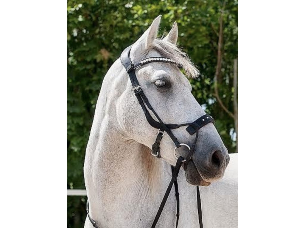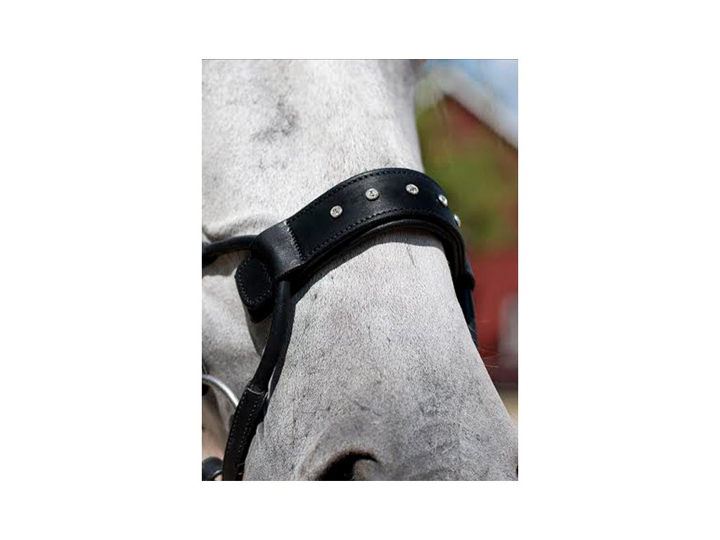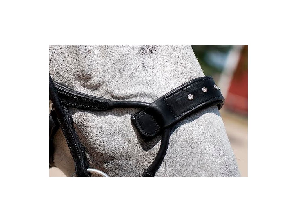 Zdobený nánosník pre uzdečku na High Jump. Nánosník je obzvlášť vhodný k tejto skokovej uzdečke. Zdobí ho päť výrazných, ale decentných kryštálov Swarovski. Vďaka krížovému prevedeniu nánosníku a lícnic je minimalizované riziko, že sa lícnice dostanú príliš blízko k očiam koňa.
