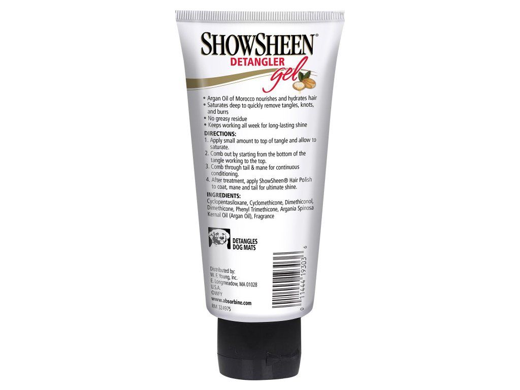 ShowSheen gélový rozčesávač pomáha udržiavať vlhkosť v hrive a chvoste, posilňuje ich a zanecháva konskú srsť zdravú, ľahko rozčesateľnú a s vysokým leskom počas niekoľkých dní. Zabraňuje opätovnému zamotaniu konských vlasov.