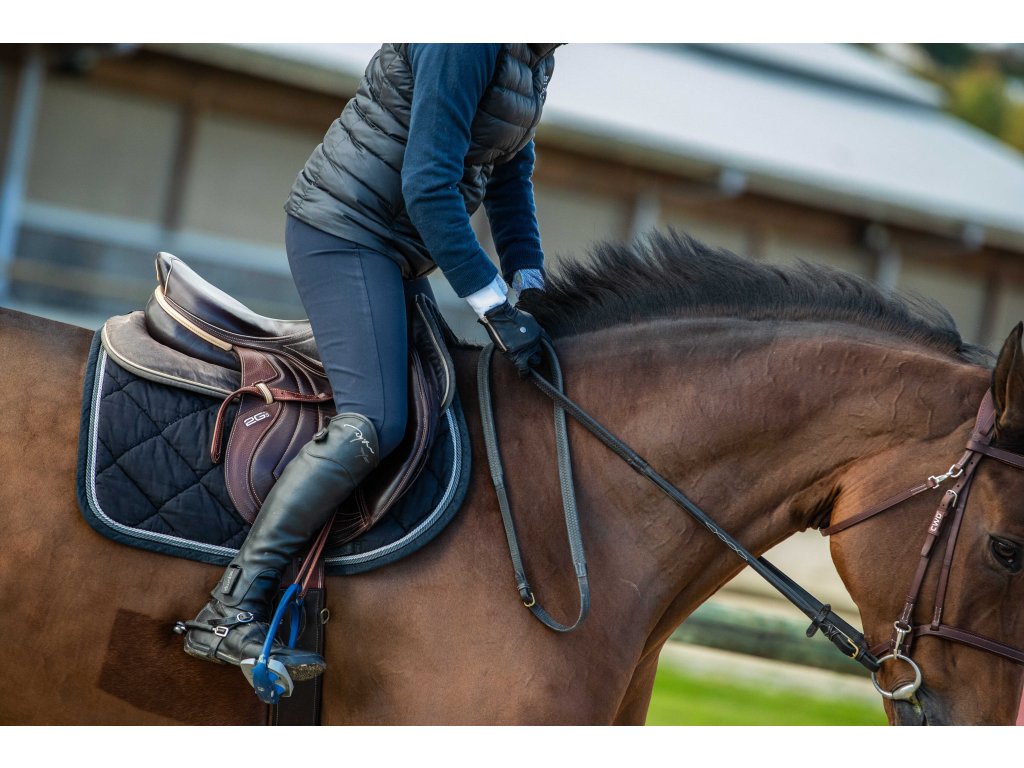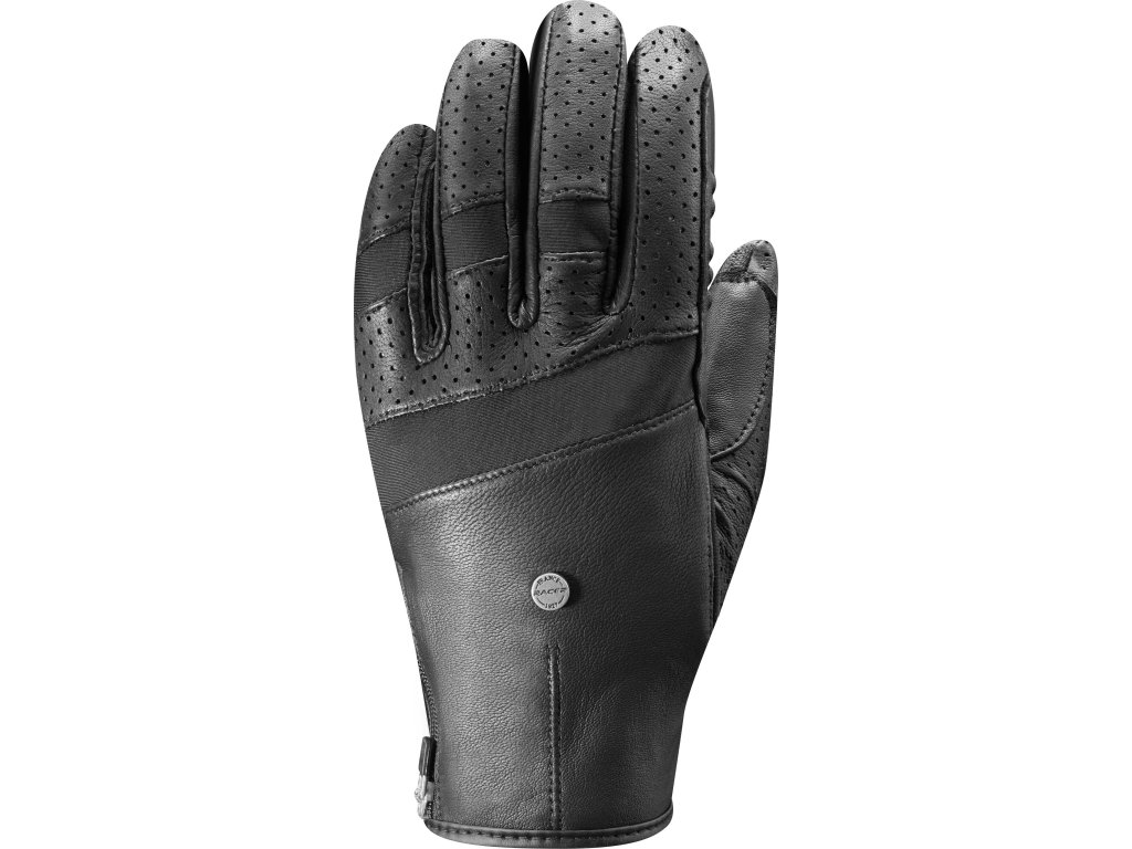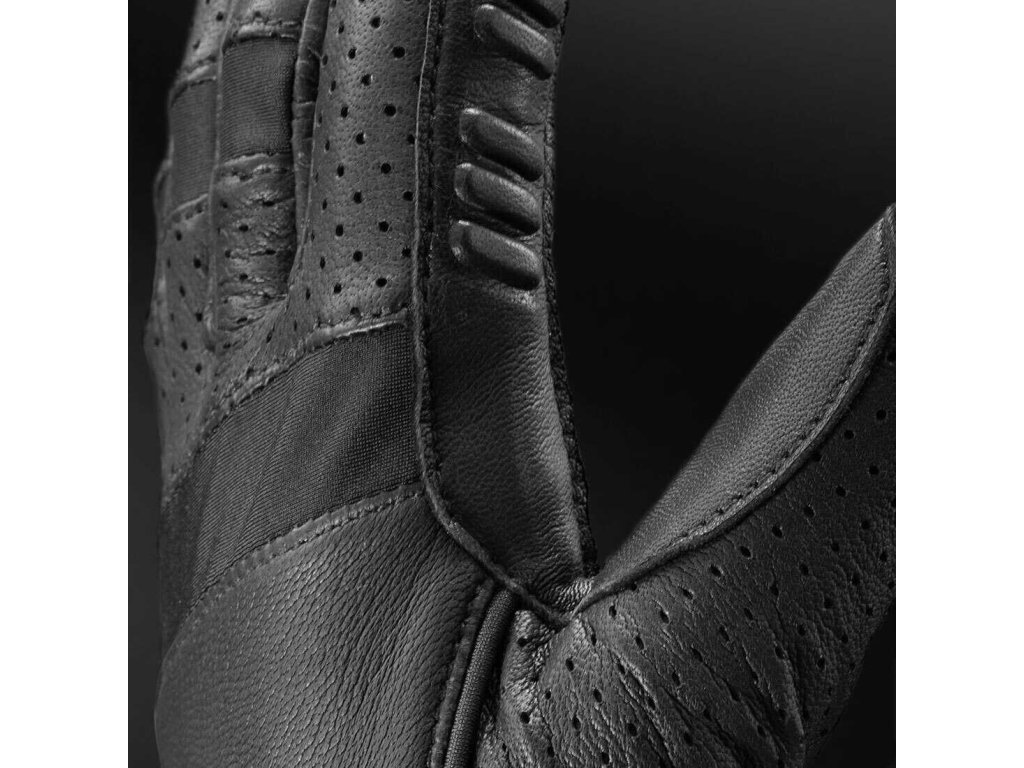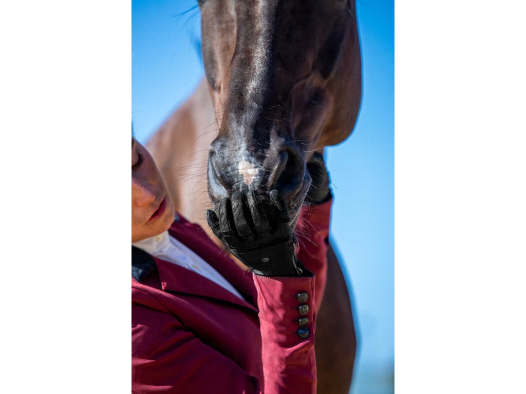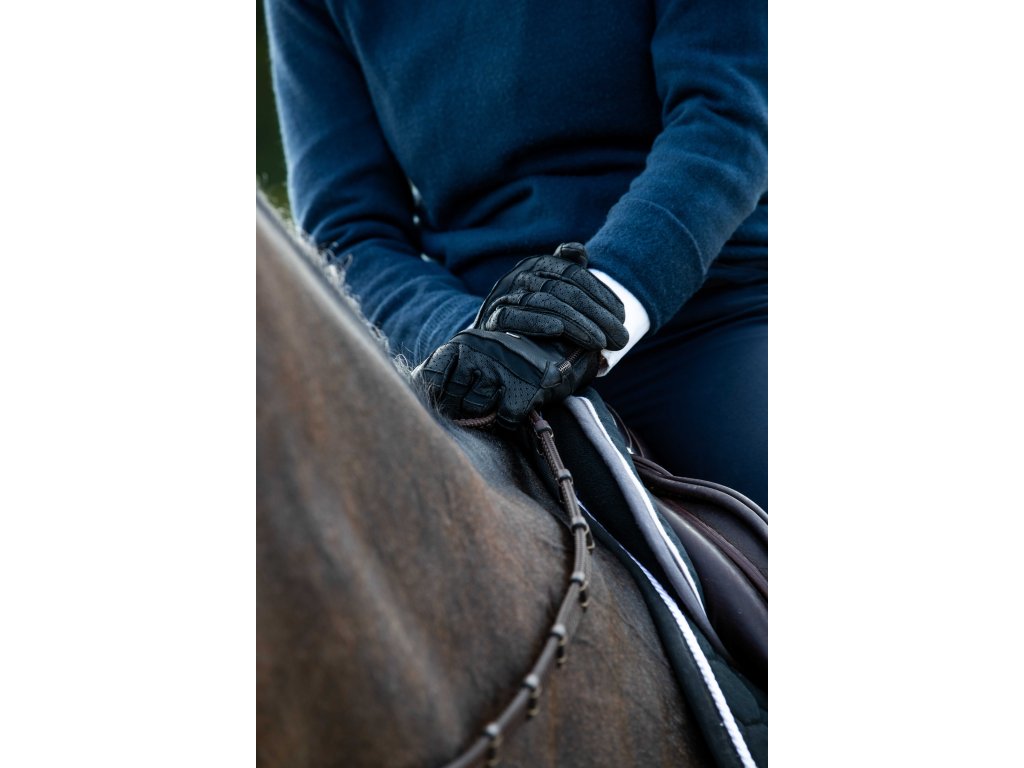 Kvalitní rukavice jsou vyrobeny z prémiové kůže, která zajišťuje přirozený a jistý úchop otěží. Kožené výztuhy zvyšují odolnost, zatímco perforace na prstech umožňují účinné odvětrávání a odvod potu. Elastické vložky z lycry v oblasti kloubů poskytují vysokou flexibilitu a pohodlí. Přiléhavý střih je doplněn zapínáním na zip. Protiskluzový efekt zajišťuje pět silikonových polštářků na ukazováku a dotykový materiál umožňuje ovládání dotykových zařízení.