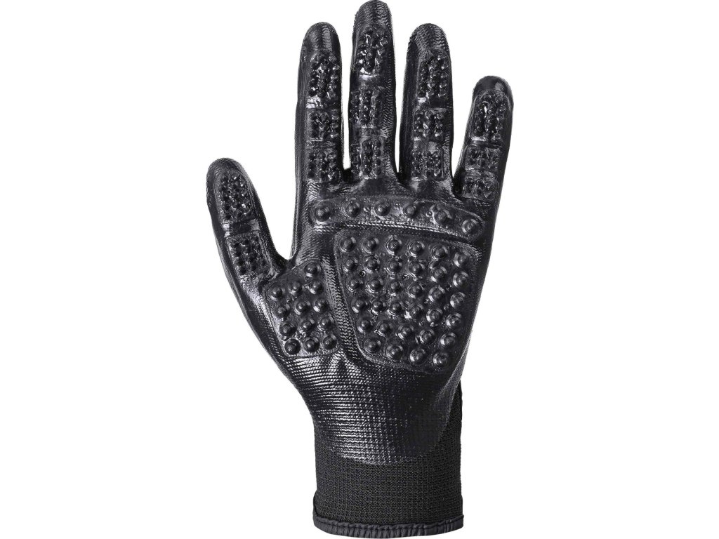 Tieto rukavice predstavujú praktickú pomôcku pre dôkladnú starostlivosť o kone. Sú navrhnuté pre efektívne odstránenie nečistôt aj uvoľnenej srsti pri umývaní alebo bežnom česaní. Masážne výstupky na dlani zaisťujú jemnú, ale účinnú starostlivosť a zároveň podporujú prekrvenie pokožky koňa. Rukavice sú dodávané v páre a vďaka bezpečnému zapínaniu na suchý zips dokonale držia na rukách.