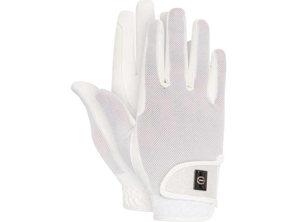 Tyto rukavice byly navrženy pro maximální pohodlí a styl během teplých letních dnů v sedle. Jsou vyrobené z vysoce prodyšného síťovaného materiálu, který umožňuje volný průchod vzduchu a udržuje ruce chladné a suché i při intenzivním tréninku. Rychleschnoucí tkanina zajišťuje pocit svěžesti a komfortu po celou dobu nošení. Materiál v oblasti dlaně z jemné syntetické kůže poskytuje spolehlivý úchop otěží a jistotu při každém pohybu. Díky elastickému materiálu v oblasti zápěstí a nastavitelnému zapínání na suchý zip rukavice dokonale padnou. Stylový prvek v podobě třpytivého detailu s kovovou destičkou dodává rukavicím elegantní vzhled.