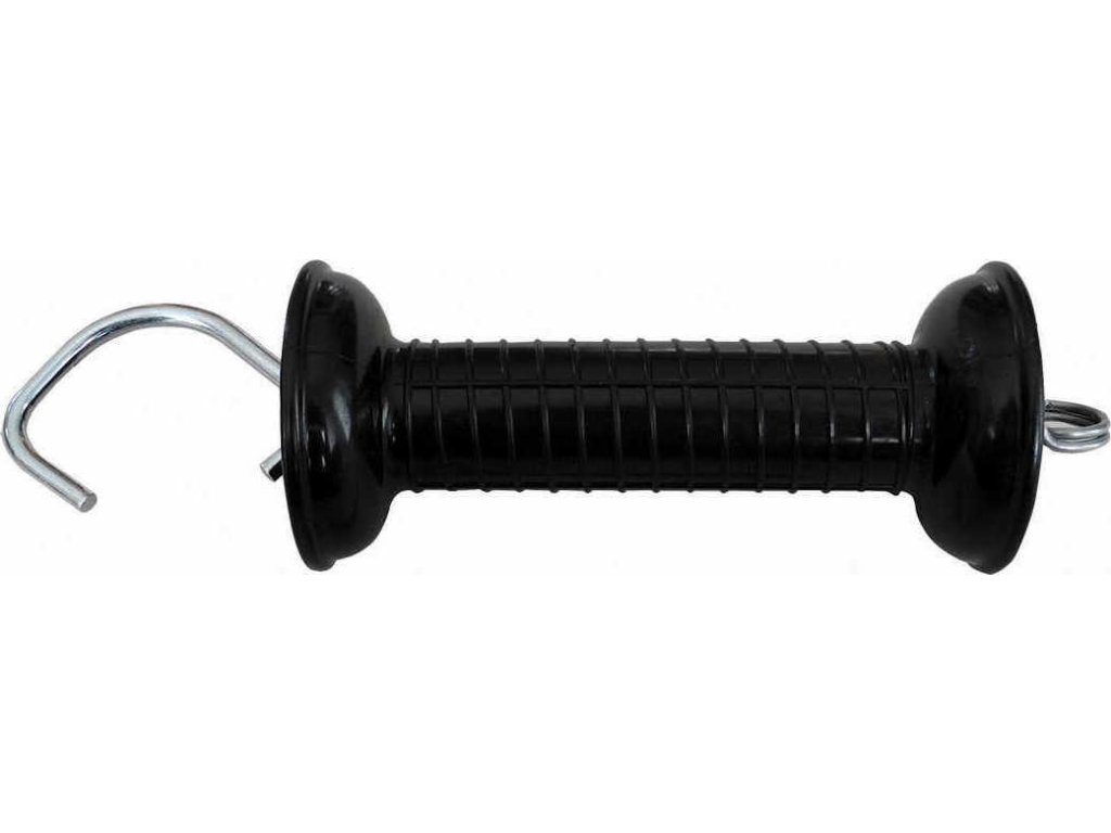 Štandardná vstupná rukoväť pre elektrické ohradníky so zabudovanou pružinou a háčikom. Vyrobené z kvalitného a pevného materiálu.