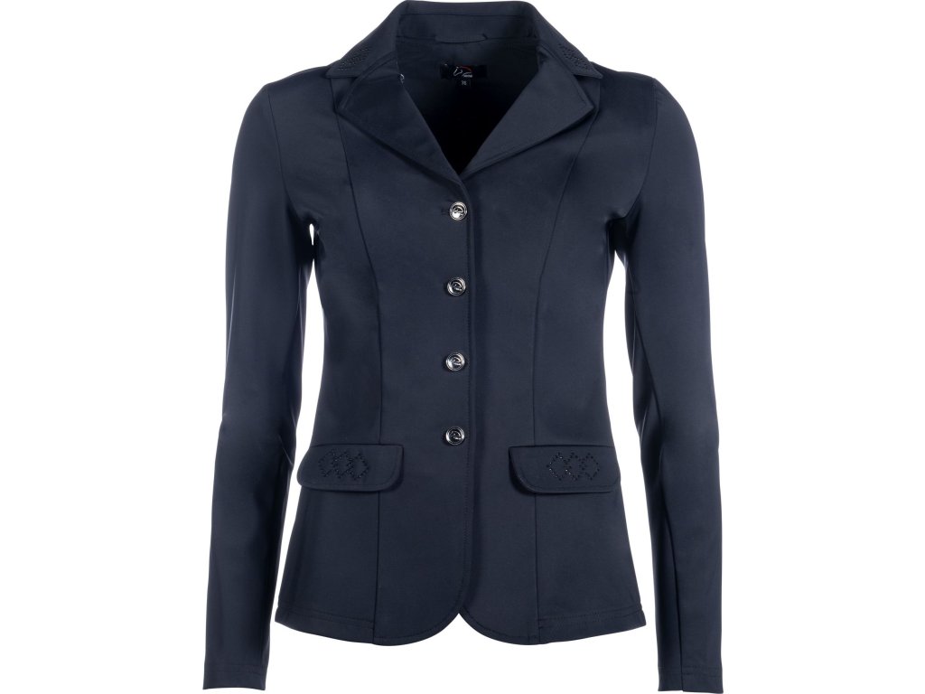 Vysokokvalitné sako na preteky vyrobené z priedušného materiálu, ktorý je odolný voči nečistotám a pokrčeniu. Sako je veľmi pohodlné a skvele sedí. Pod zapínaním na gombíky na nachádza skrytý zips. Zdobené jemnými syntetickými kamienkami. Možno ho prať v práčke pri 30 stupňoch. K dispozícii aj v tmavomodrej farbe. Dokonale sa hodí k ostatným produktom z kolekcie Competition. K dispozícii v dámskych aj v detských veľkostiach.
