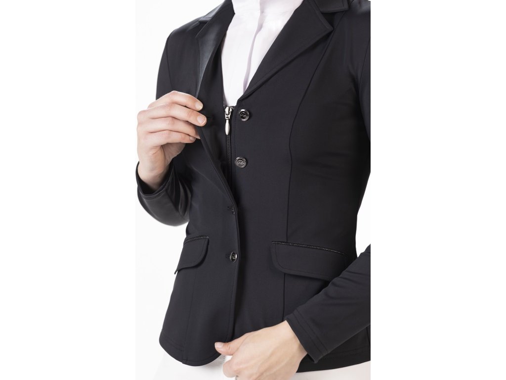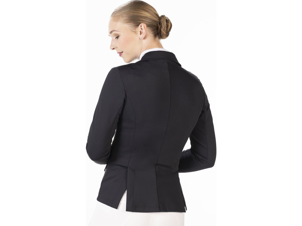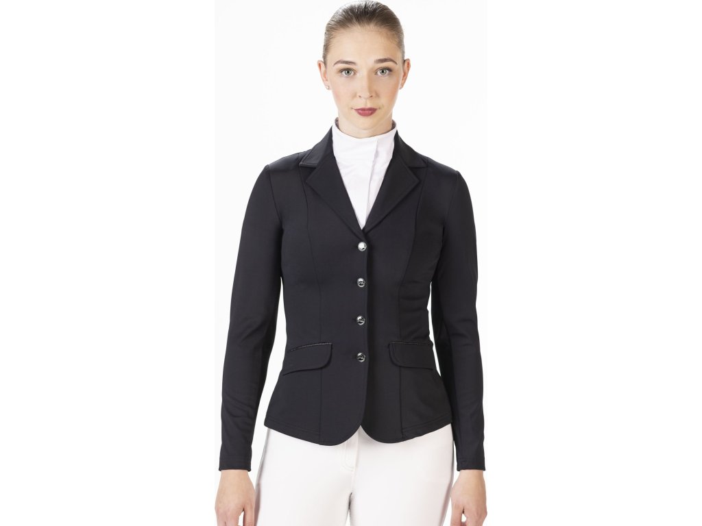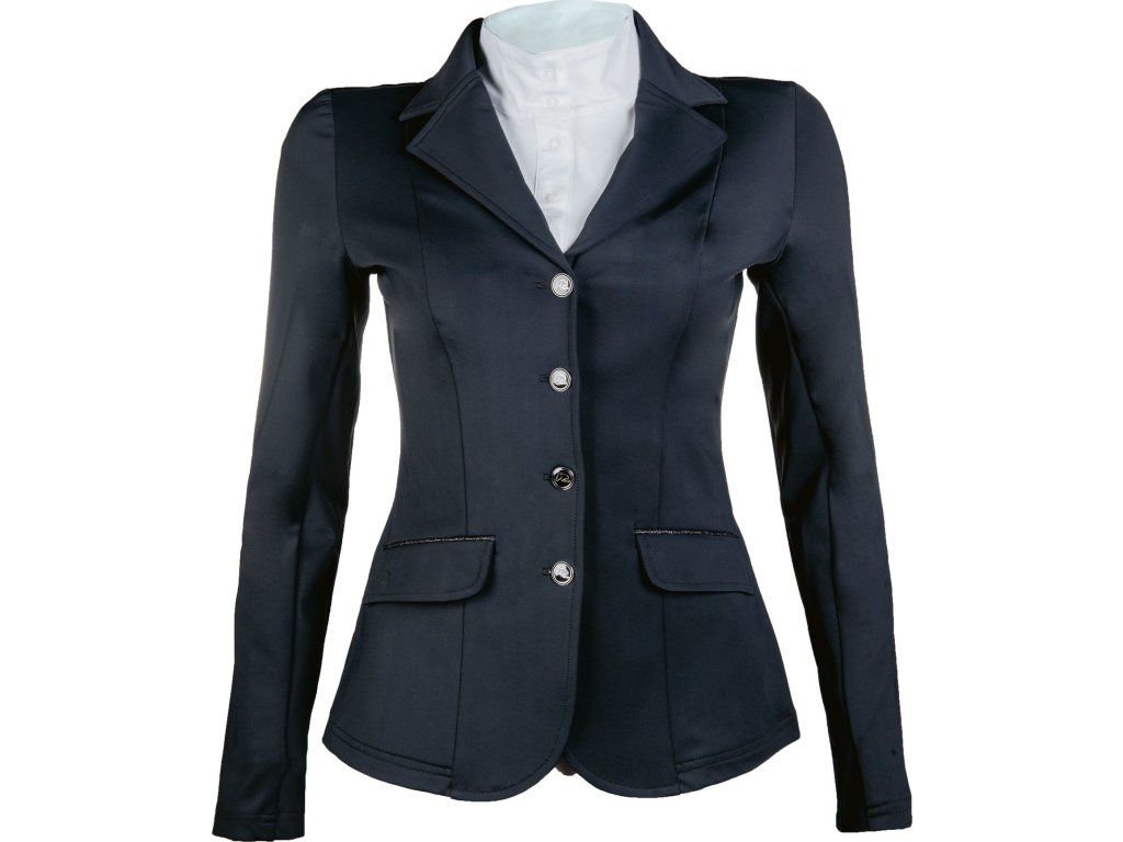 Štýlové sako na preteky Luisa od značky HKM. Vyrobené z priedušného a elastického materiálu, ktorý jazdcovi poskytuje maximálnu voľnosť a pohodlie počas jazdy. Naviac materiál odpudzuje nečistoty a nekrčí sa. Vďaka priliehavému strihu lichotí postave. Dve predné vrecká zdobí trblietavá stuha a jemné logo značky HKM. Vďaka zipsu pod gombíkovou légou perfektne sedí v strednej polohe. Ďalej má dve zadné jazdecké rozparky. K dispozícii vo viacerých veľkostiach.