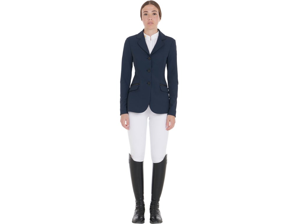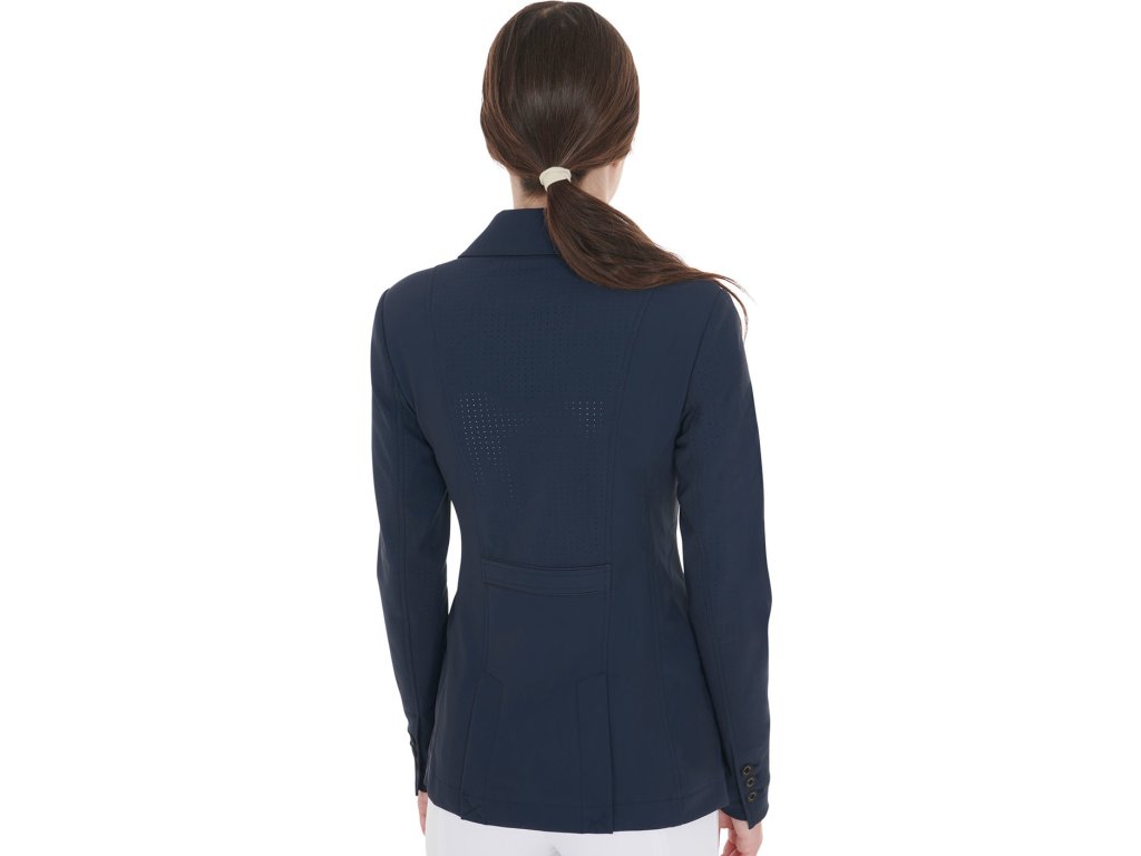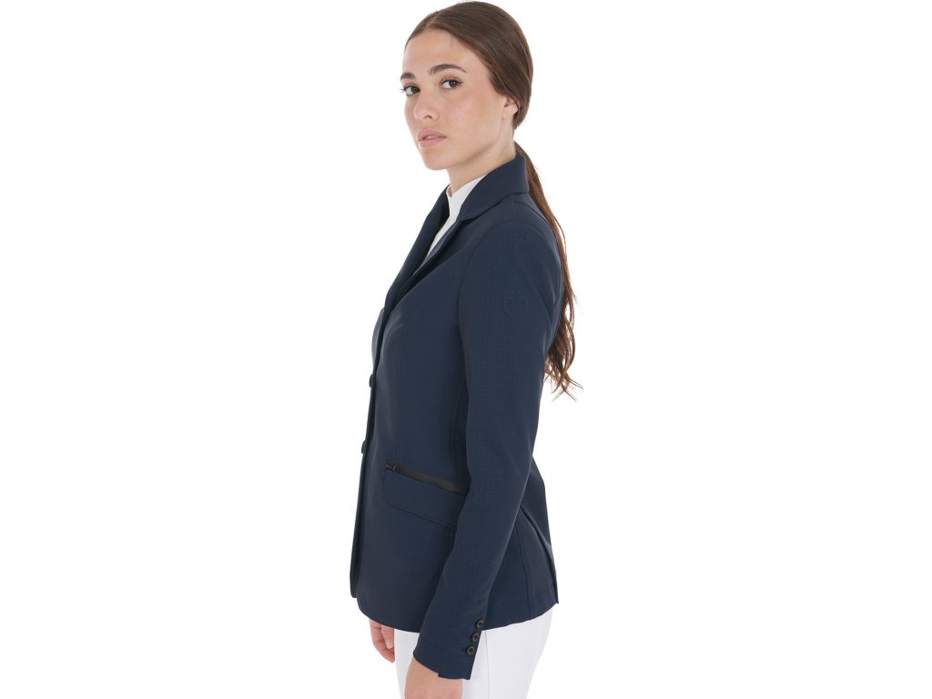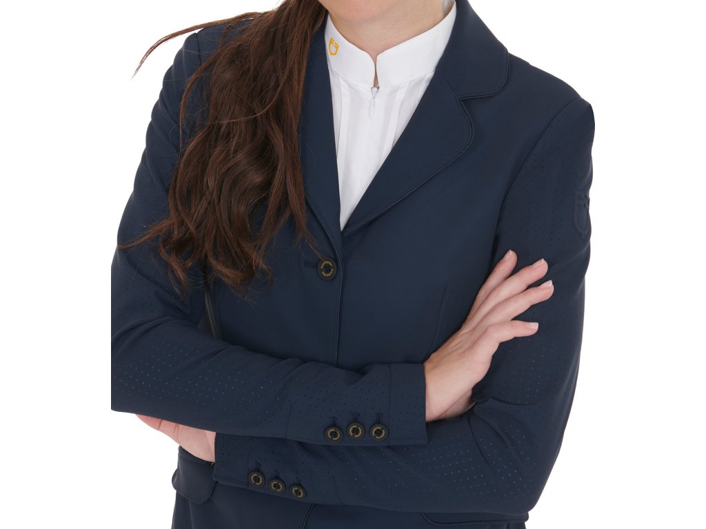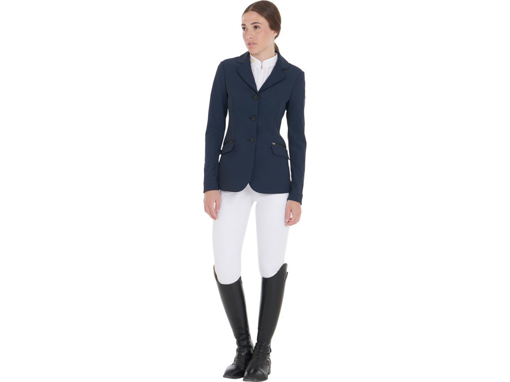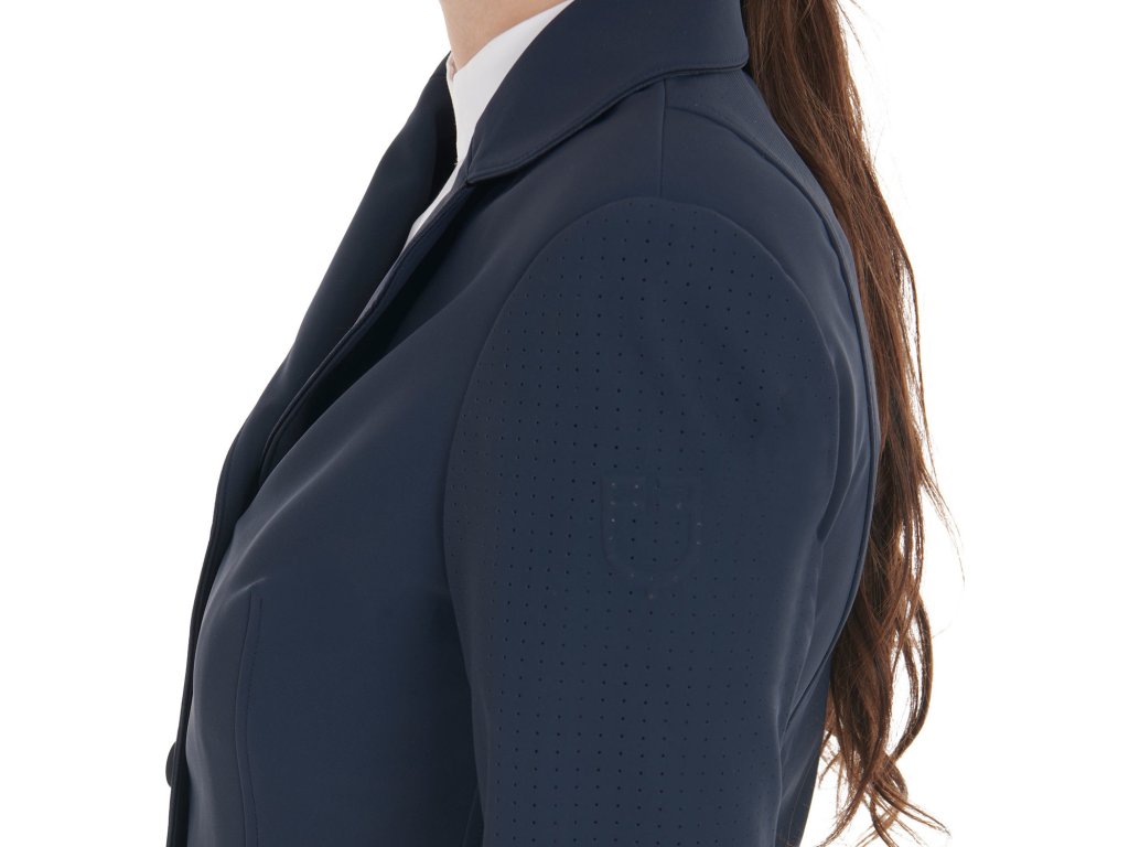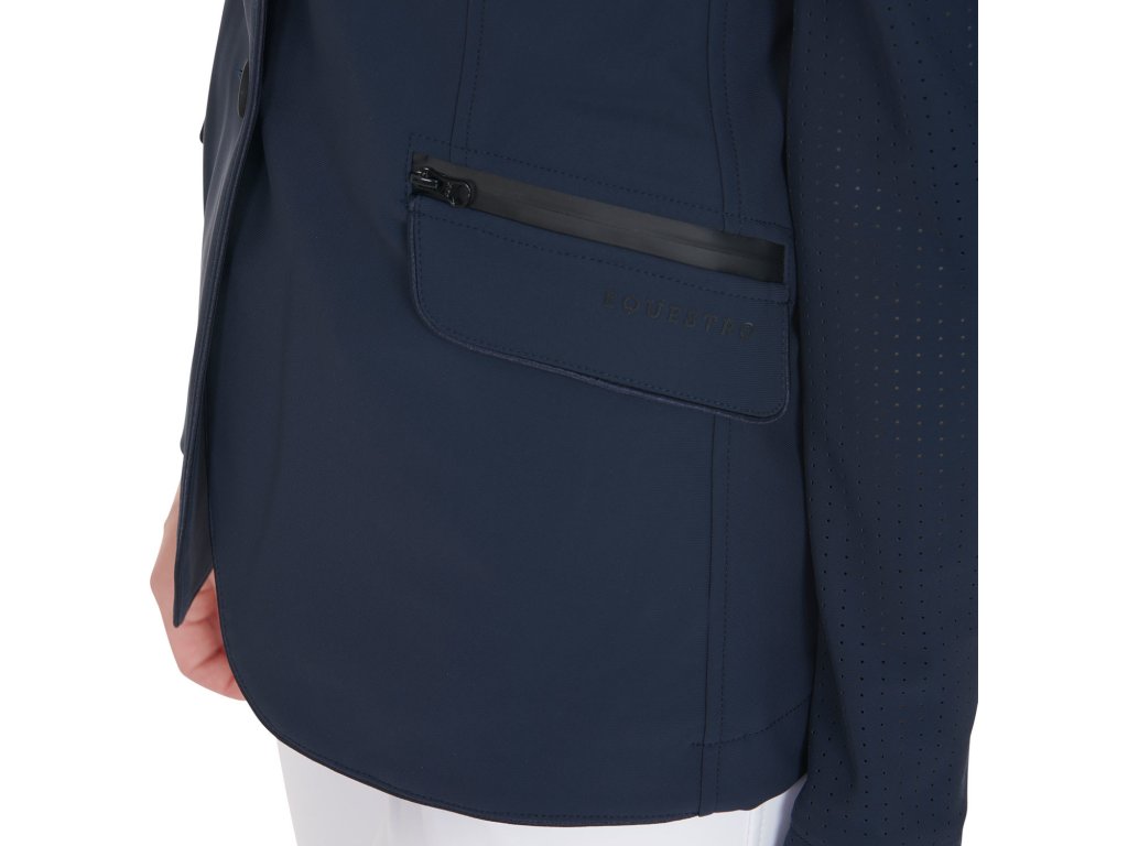 Vysokokvalitné sako na preteky z priedušnej a ultraľahkej technickej tkaniny. Vďaka perforovanej tkanine v hornej časti chrbta a na rukávoch je mimoriadne priedušné a vhodné na letné obdobie. Poskytuje maximálne pohodlie a voľnosť pohybu. Perfektne sedí vďaka ergonomickému strihu. Má zapínanie na tri gombíky a dve vrecká na zips. Manžety sa zapínajú na tri gombíky. Zdobí ho logo Equestro na ľavom ramene a nápis pod vreckom. K dispozícii vo viacerých farbách.