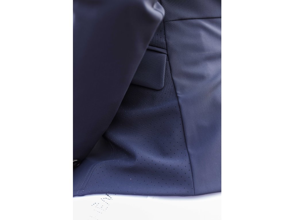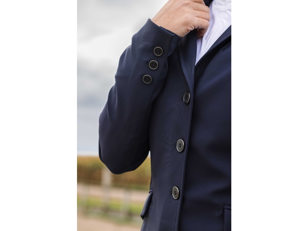 Pohodlné a pružné sako na preteky, ktoré je vyrobené zo štvorsmernej elastickej tkaniny, ktorá ponúka optimálnu voľnosť pohybu a maximálny komfort pri jazde. Vďaka ľahkému materiálu je odolné proti žmolkovaniu a zachováva si elegantný vzhľad aj pri častom nosení. Praktické predné zapínanie na štyri gombíky a zips, ktorý je skrytý pod gombíkovou légou, zaisťujú vyššie pohodlie. Sieťovaná podšívka zlepšuje priedušnosť, zatiaľ čo hladká polyesterová podšívka v rukávoch uľahčuje obliekanie.