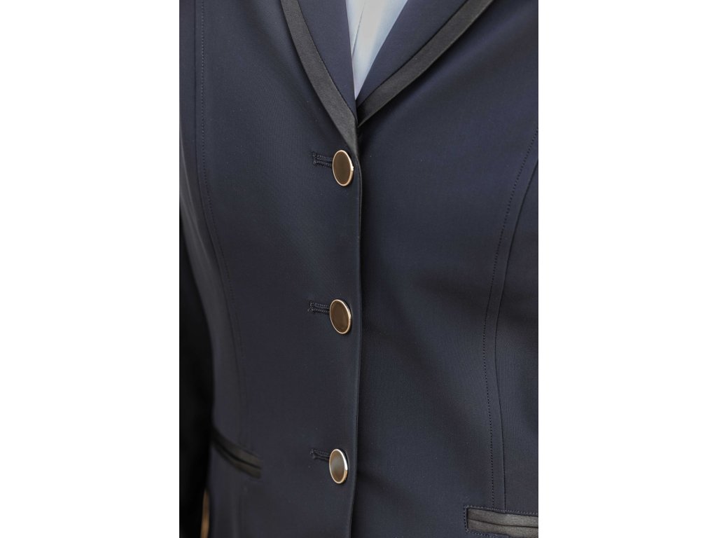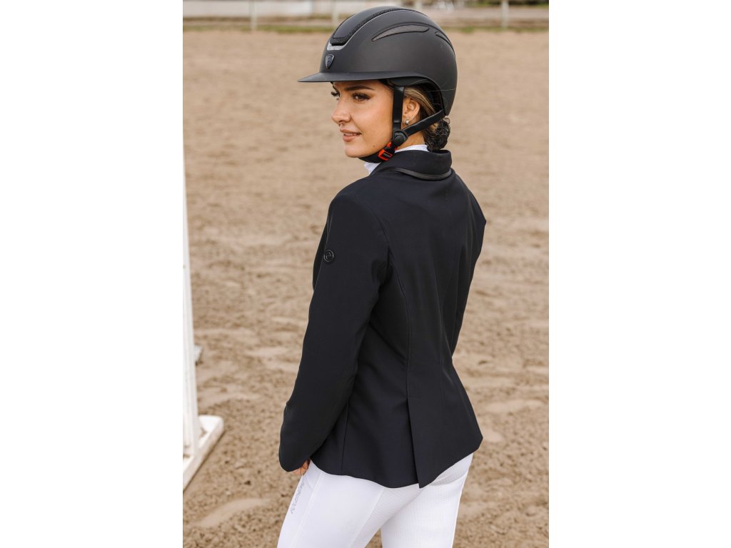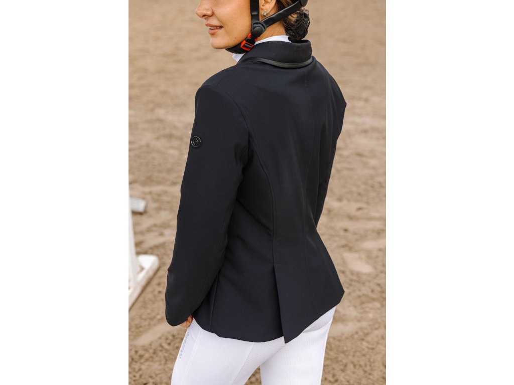 Sako na preteky, ktoré je navrhnuté tak, aby poskytovalo maximálne pohodlie a voľnosť pohybu vďaka štvorsmerne elastickej tkanine. Má strih, ktorý vytvára elegantnú siluetu, a je vyrobené z ľahkého materiálu, ktorý je odolný voči žmolkovaniu, takže si zachová skvelý vzhľad aj po dlhodobom používaní. Kontrastné lemovanie pozdĺž goliera a na chlopniach falošných vreciek dodáva saku sofistikovaný nádych. Zapína sa pomocou klasických gombíkov. Sieťovaná podšívka na tele zaisťuje vynikajúcu priedušnosť.