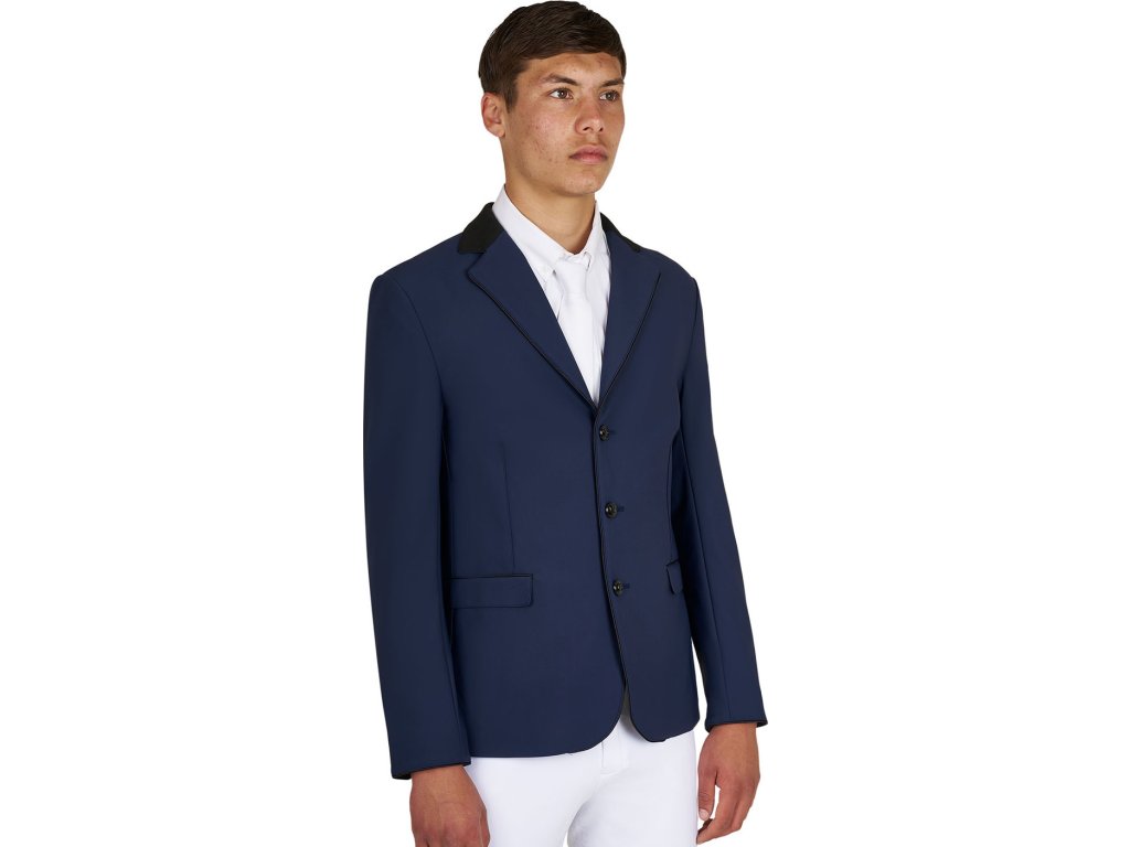 Vysokokvalitné sako na preteky, vyrobené z priedušnej a ultraľahkej technickej tkaniny. Špeciálny dizajn zaručuje maximálne pohodlie a voľnosť pohybu. Sako je vhodné najmä na šport, vyniká typickou eleganciou produktov Equestro. Perfektne sedí vďaka ergonomickému strihu. Má zapínanie na tri gombíky, vrecká, semišový golier a vnútornú podšívku. Na ramene je zdobené logom Equestro.