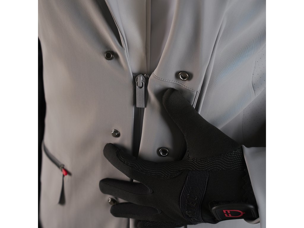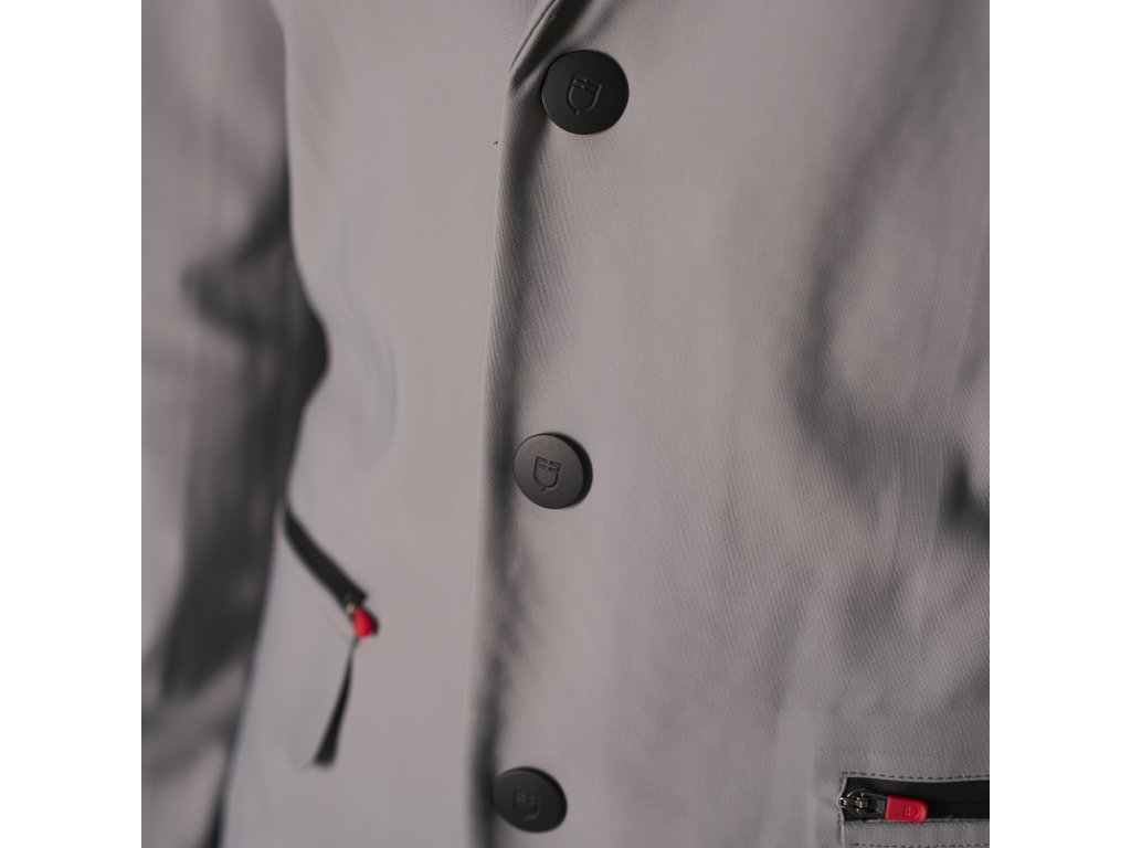Pánske sako na preteky vyrobené z priedušnej a elastickej technickej tkaniny s tepelne uzavretými švami, ktorá je silnou stránkou kolekcie Ridertech. Vysoko priedušná tkanina je navrhnutá tak, aby udržiavala jazdca v chlade a suchu. Podporuje optimálnu reguláciu telesnej teploty, zatiaľ čo perforované vložky v kritických oblastiach, ktoré sú najviac vystavené potu, zabezpečujú vetranie a neustály pocit sviežosti. Minimalistický a elegantný dizajn je obohatený o zapínanie na tri gombíky a bočné vrecká s rozparky. Zdobí ho červené logo Equestro na ľavom rukáve, čierne a červené zipsy na vreckách a čierny nápis Ridertech na chrbte, ktorý podčiarkuje váš štýl a vášeň. Vďaka mimoriadne ergonomickému strihu je sako vhodné na športové použitie, pričom nezabúda na eleganciu.