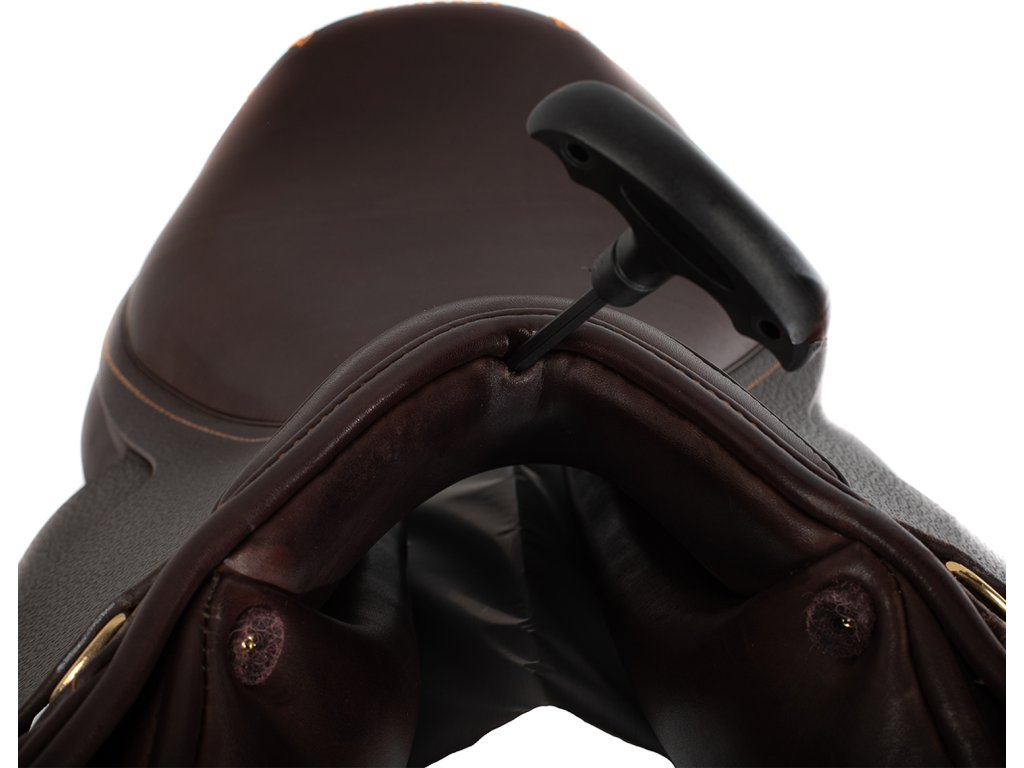 3. Nastaviteľný stredový mechanizmus vnútri komory umožňuje jazdcovi nastaviť sedlo podľa anatomickej stavby tela koňa.