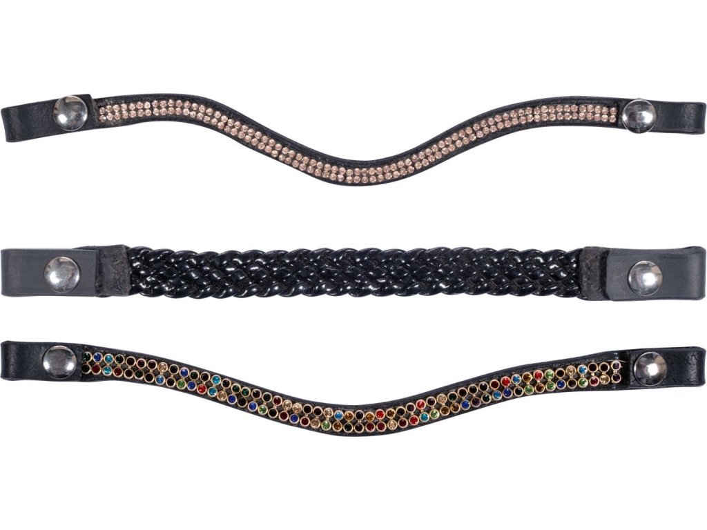 Sada 3 kusov čeleniek z imitácie kože a rôzneho dizajnu od značky HKM na uzdečky k Hobby Horse koníkom. Čelenky sa dajú ľahko upevniť pomocou gombíkov. Sú zdobené kamienkami a prešívaním. UPOZORNENIE: Ide o doplnok k plyšovým hračkám!