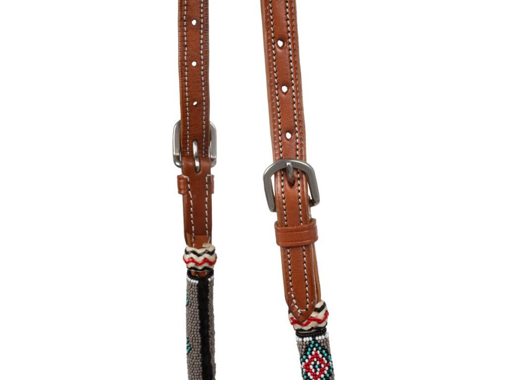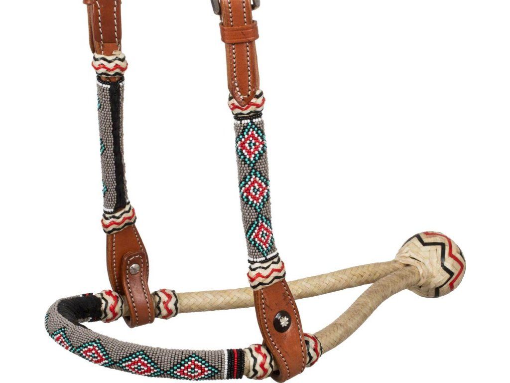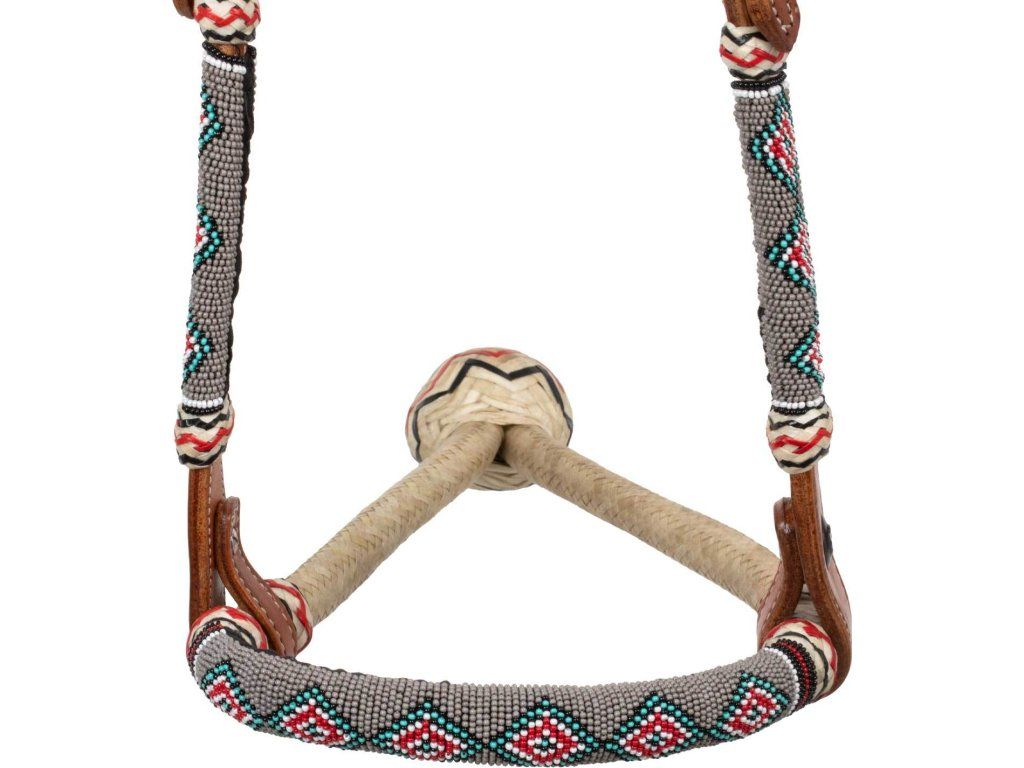 Uzdečka bosal z mäkkej kvalitnej kože a oťaže z bavlny, ideálne na všetky typy práce, na každodenné použitie počas tréningu a pretekoch. Pracky vyrobené z nerezovej ocele zaisťujú väčšiu pevnosť a stabilitu a pôsobia elegantne a funkčne zároveň. Uzdečka je zdobená farebnými korálkami, ktoré jej dodávajú nádych elegancie a originality.