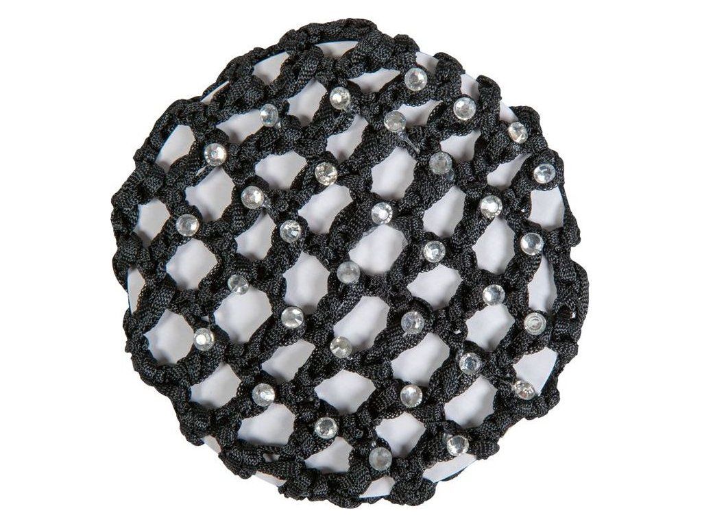 Elegantná sieťka na vlasy HKM so syntetickými kamienkami. Sieťka skvele drží nepoddajné vlasy v drdole. Vhodná ako elegantný doplnok na preteky. Jednoduchá aplikácia pomocou gumičky v leme sieťky.