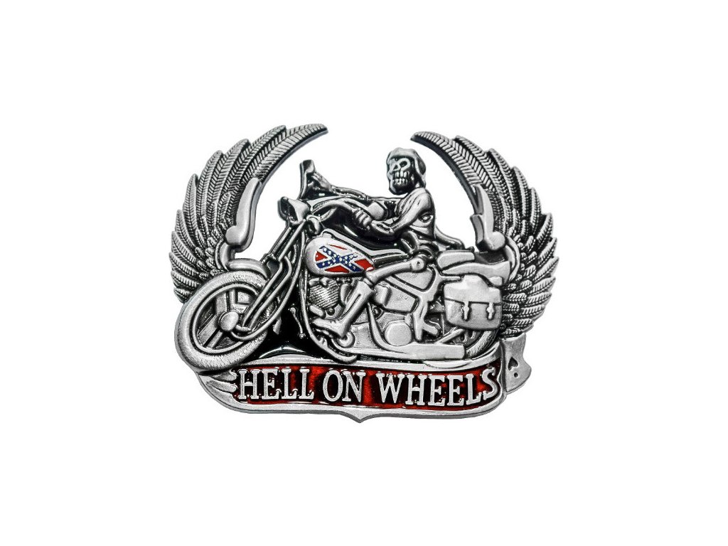 Westernová spona na opasok s motívom pre motorkárov so smaltovanými efektmi.