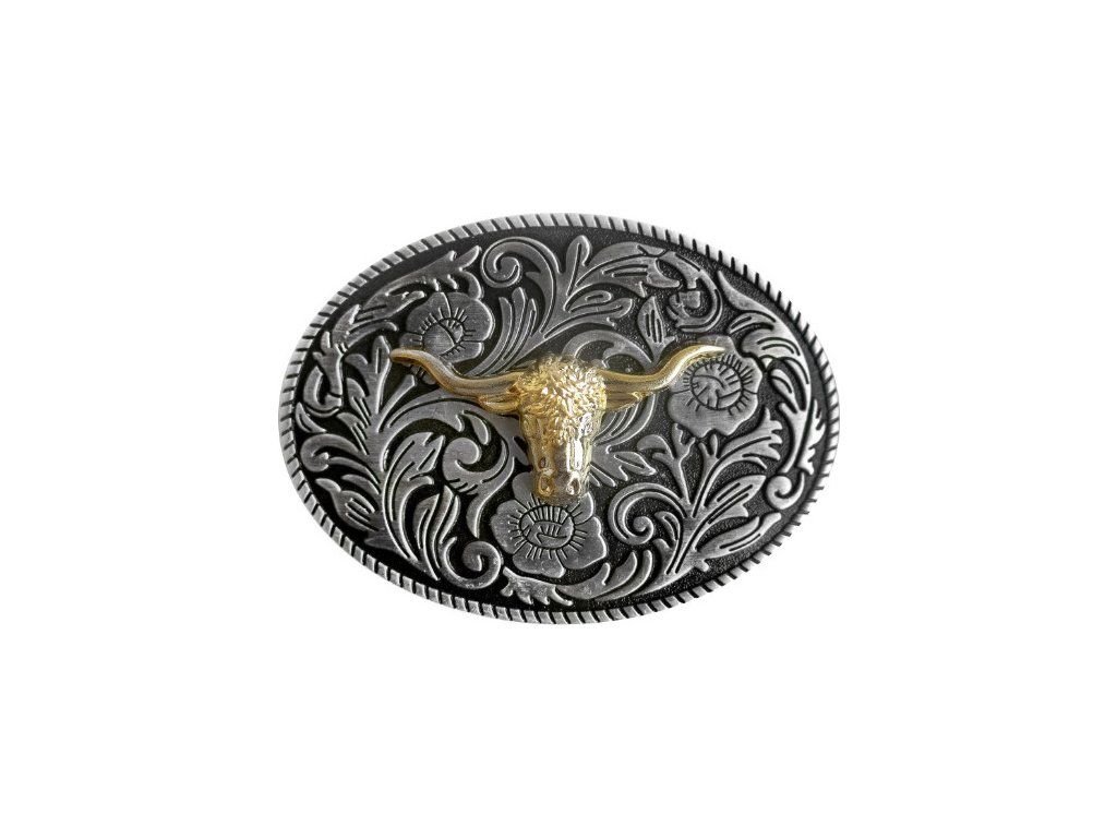 Westernová spona na opasok s prepracovaným zlatým motívom.