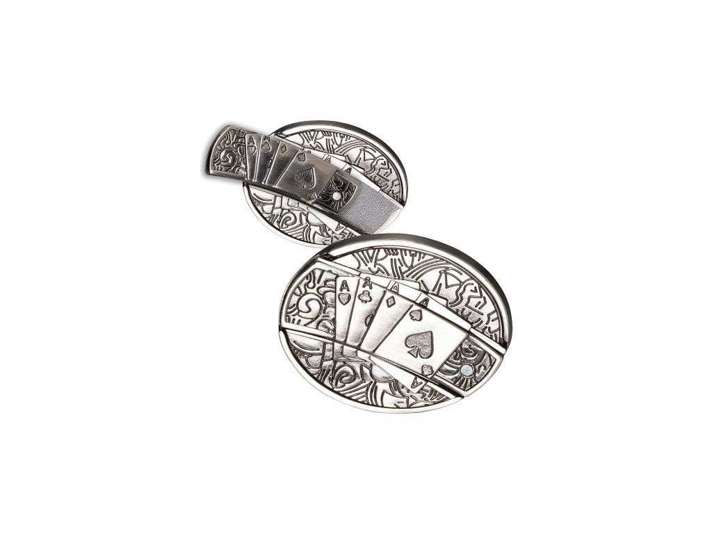 Štýlová pracka na opasok s motívom pokrových kariet s odnímateľným nožíkom. Pracku ocení každý westernový nadšenec alebo motorkár. Vhodná na opasky široké 4 cm. Dĺžka nožíka 10 cm.