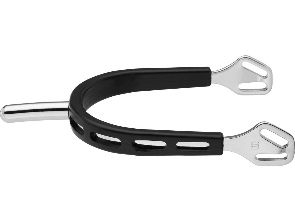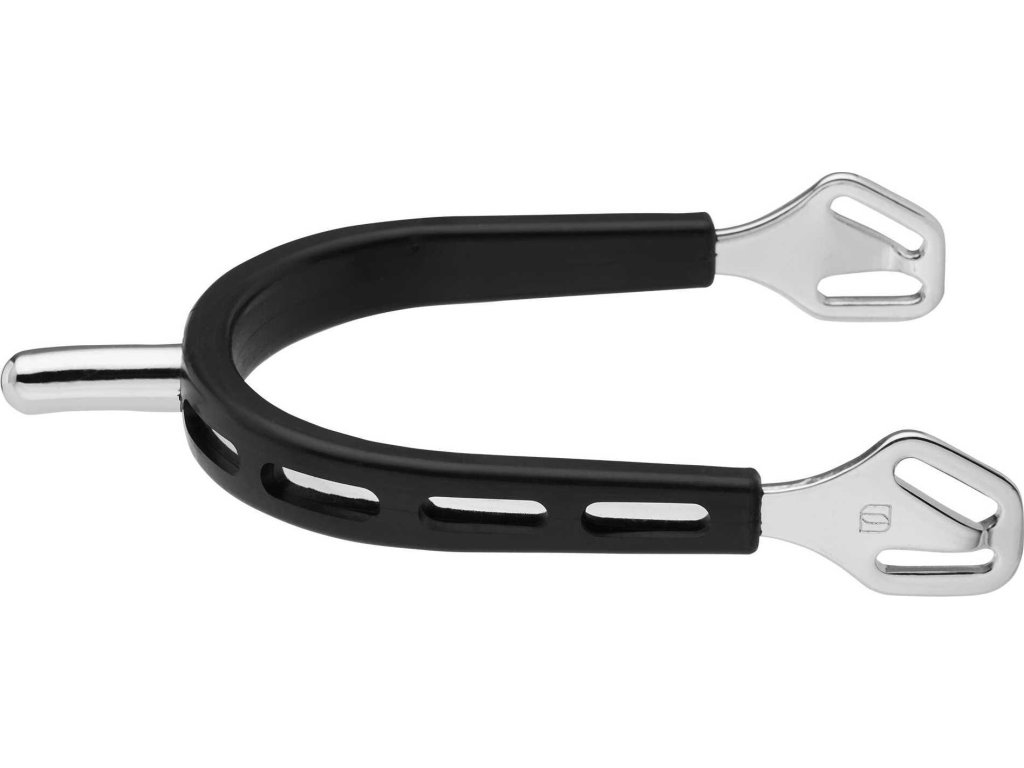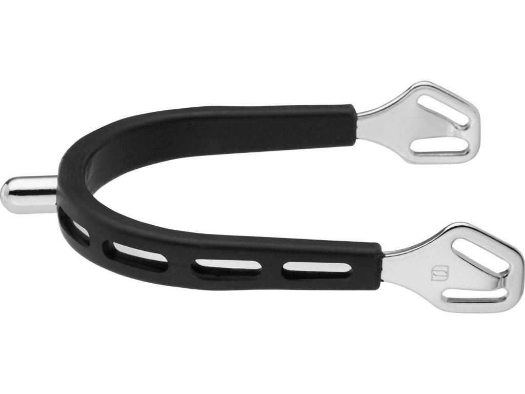 Vysokokvalitné šporne z nerezovej ocele s okrúhlym ramienkom. Zapínanie bolo vyvinuté v spolupráci s olympijským jazdcom Klausom Balkenholom a zaisťuje stabilné usadenie bez nežiaduceho tlaku či pohybu remienka. Šporne sú veľmi pohodlné, skvele držia na jazdeckých topánkach a zároveň ich chránia pred poškodením. Protišmykový gumový kryt je šetrný k povrchu obuvi. Dodávajú sa v páre. Dĺžka ramienka: 15 mm, 25 mm alebo 30 mm.