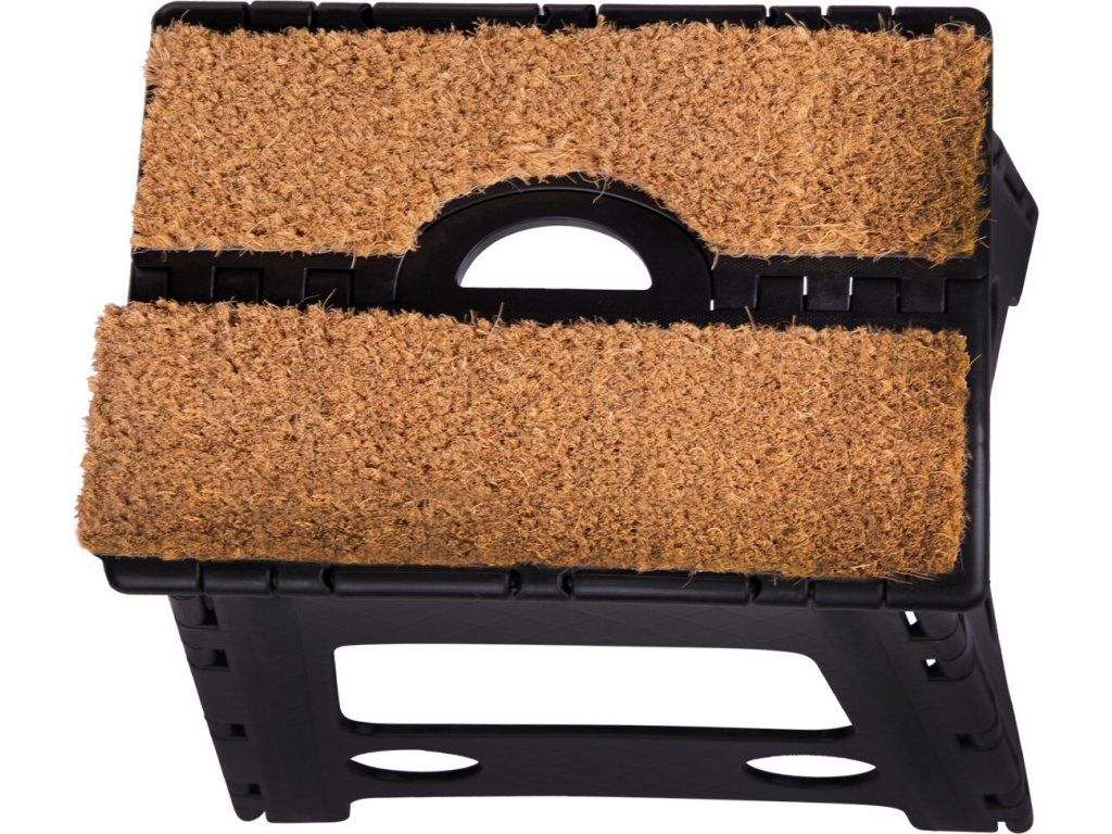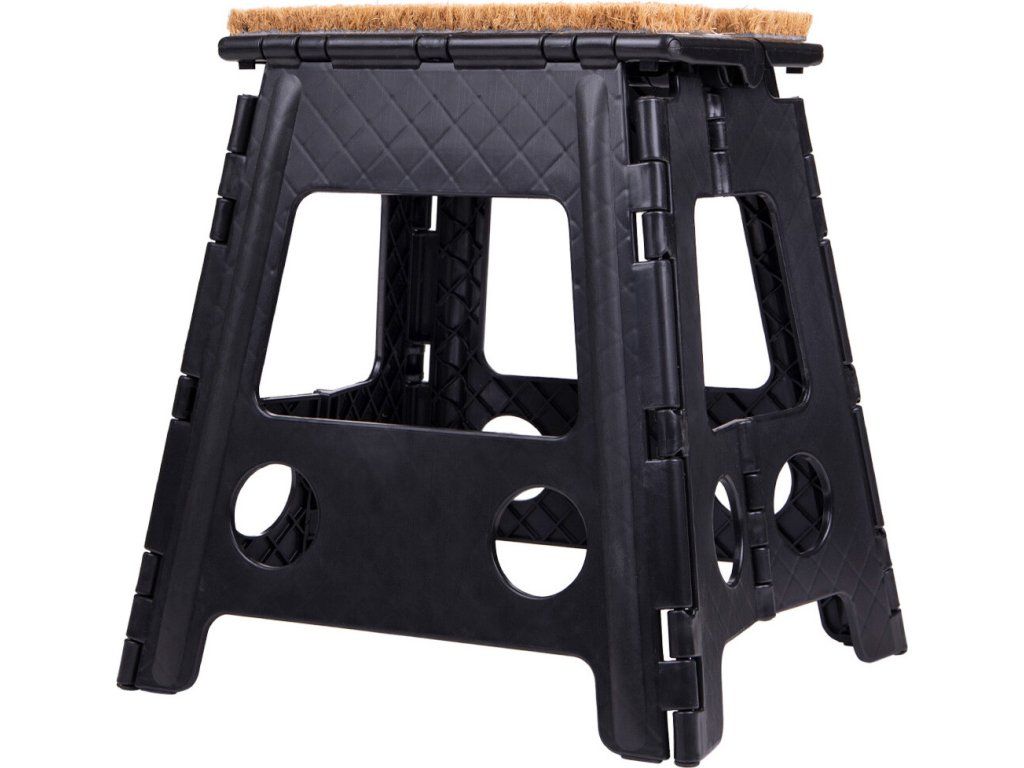 Praktická skladacia stolička na nasadanie. Je vybavená kokosovým vláknom, ktoré slúži ako rohožka na utieranie topánok. Už tak nikdy nebudete nasadať na koňa so špinavými topánkami. Stolička má nosnosť 100 kg a výšku v zloženom stave 53 cm.