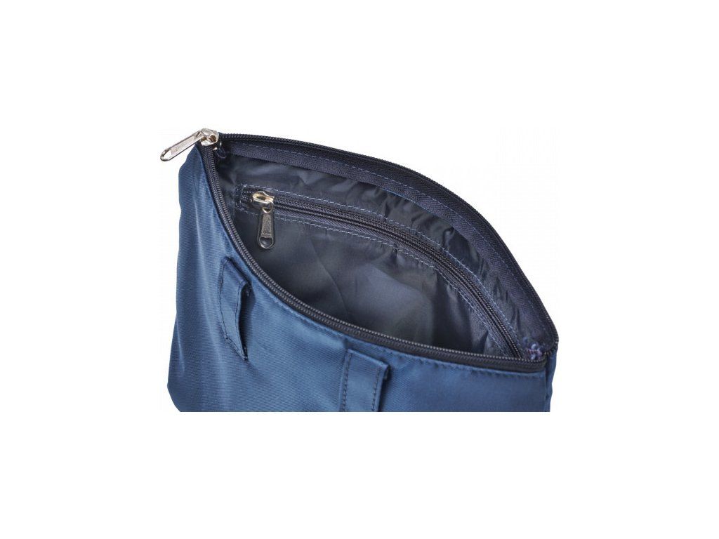 Praktická malá taška vhodná na cestovanie na uloženie drobných predmetov. Má praktické vnútorné priehradky na jednoduché triedenie: dve minipriehradky na perá, sieťované vrecko s elastickým pásom a sťahovacím vreckom a väčšie vnútorné vrecko na zips. Taška je polstrovaná a má horný zips. Je vyrobená z pevného a ľahko udržiavateľného polyesterového materiálu .