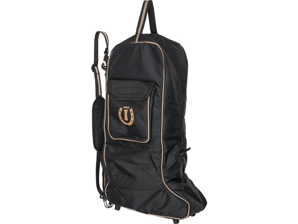 Taška na vysoké jazdecké čižmy Classic je štýlový a praktický doplnok pre každého jazdca, ktorý chce svoje čižmy chrániť a zároveň si zachovať elegantný vzhľad aj mimo sedla. Jazdecké čižmy sú investíciou, a preto si zaslúžia zodpovedajúcu starostlivosť pri preprave aj skladovaní. Táto taška ich udrží čisté, chránené pred prachom aj drobným poškodením a vždy pripravené na použitie. Premyslený dizajn kombinuje funkčnosť s typickým štýlom Imperial Riding. Predné vrecko ponúka praktický priestor napríklad na krém na kožu alebo ďalšie nevyhnutnosti. Vďaka pevným úchytom a polstrovanému ramennému popruhu sa taška pohodlne nosí, či už mierite do stajne, na preteky alebo domov.