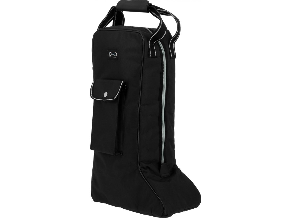 Praktická taška určená pro bezpečné uložení a přenášení vysokých jezdeckých bot. Je vyrobena z pevného a odolného nylonu a je vybavena zapínáním na zip. Dvě robustní nylonové rukojeti zajišťují pohodlné nošení. Spodní část je opatřena čtyřmi plastovými nožičkami, díky kterým lze tašku položit na zem, aniž by se ušpinila. Na boku se nachází malá kapsa na drobnosti se zapínáním na druk.