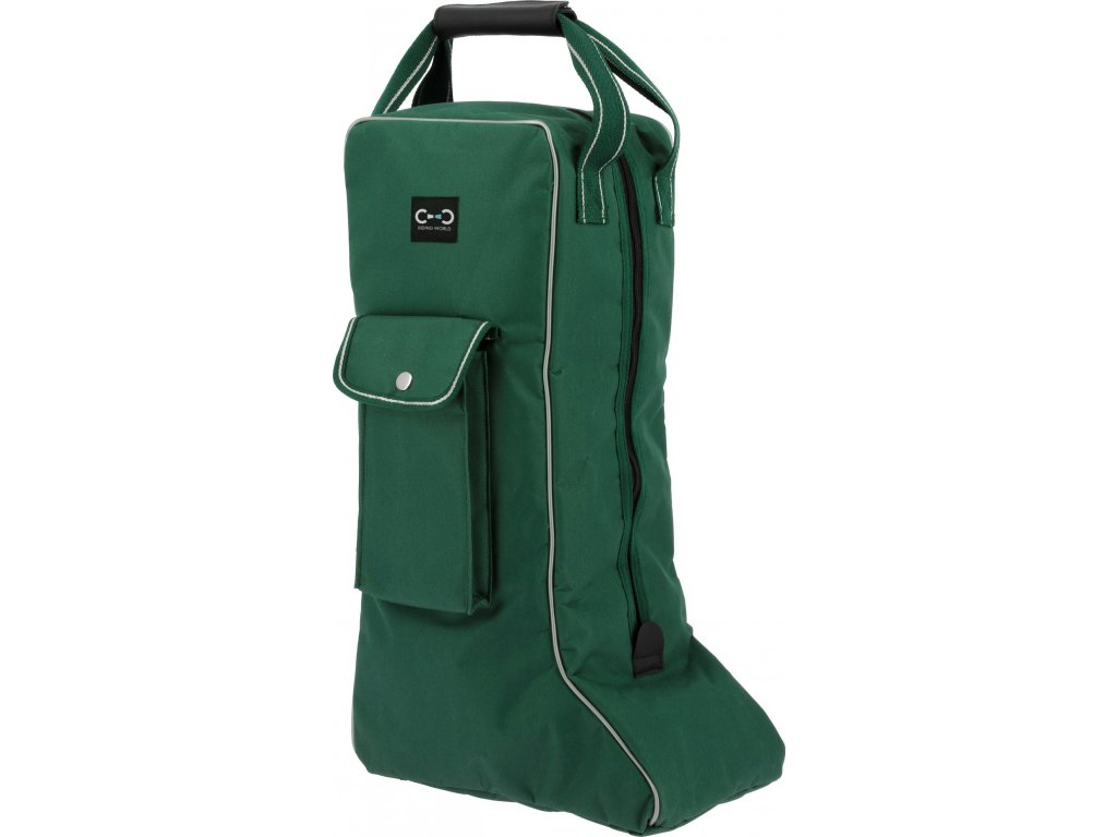 Praktická taška určená pro bezpečné uložení a přenášení vysokých jezdeckých bot. Je vyrobena z pevného a odolného nylonu a je vybavena zapínáním na zip. Dvě robustní nylonové rukojeti zajišťují pohodlné nošení. Spodní část je opatřena čtyřmi plastovými nožičkami, díky kterým lze tašku položit na zem, aniž by se ušpinila. Na boku se nachází malá kapsa na drobnosti se zapínáním na druk.