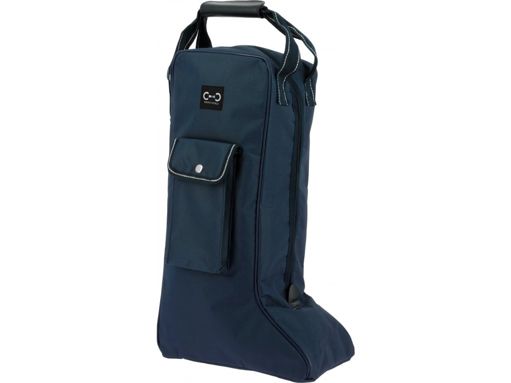 Praktická taška určená pro bezpečné uložení a přenášení vysokých jezdeckých bot. Je vyrobena z pevného a odolného nylonu a je vybavena zapínáním na zip. Dvě robustní nylonové rukojeti zajišťují pohodlné nošení. Spodní část je opatřena čtyřmi plastovými nožičkami, díky kterým lze tašku položit na zem, aniž by se ušpinila. Na boku se nachází malá kapsa na drobnosti se zapínáním na druk.