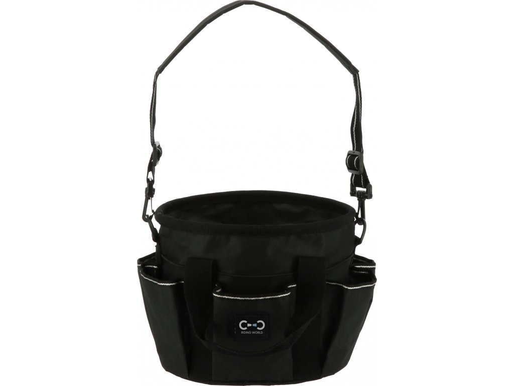 Praktická taška na čistenie umožňuje mať čistenie prehľadne uložené a ľahko dostupné. Šesť vonkajších vreciek poskytuje dostatok priestoru na kefy aj ďalšie vybavenie. Stabilné prevedenie so spevneným dnom a plastovými cvočkami zaisťuje, že taška dobre stojí a drží tvar. Pre pohodlné prenášanie je vybavená dvoma uchami a nastaviteľným, odnímateľným ramenným popruhom s karabínami. Vhodná na každodenné použitie v stajni aj na pretekoch.