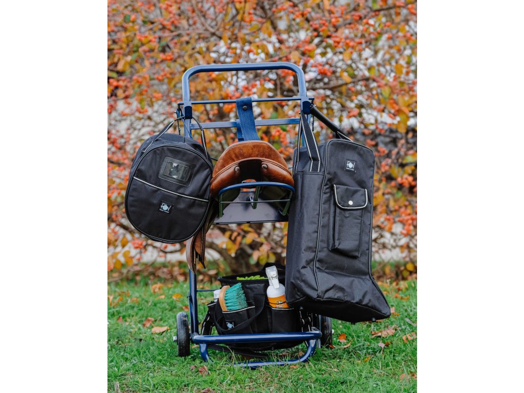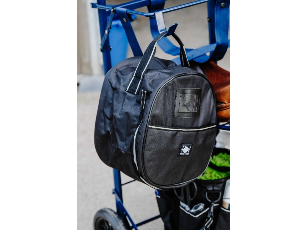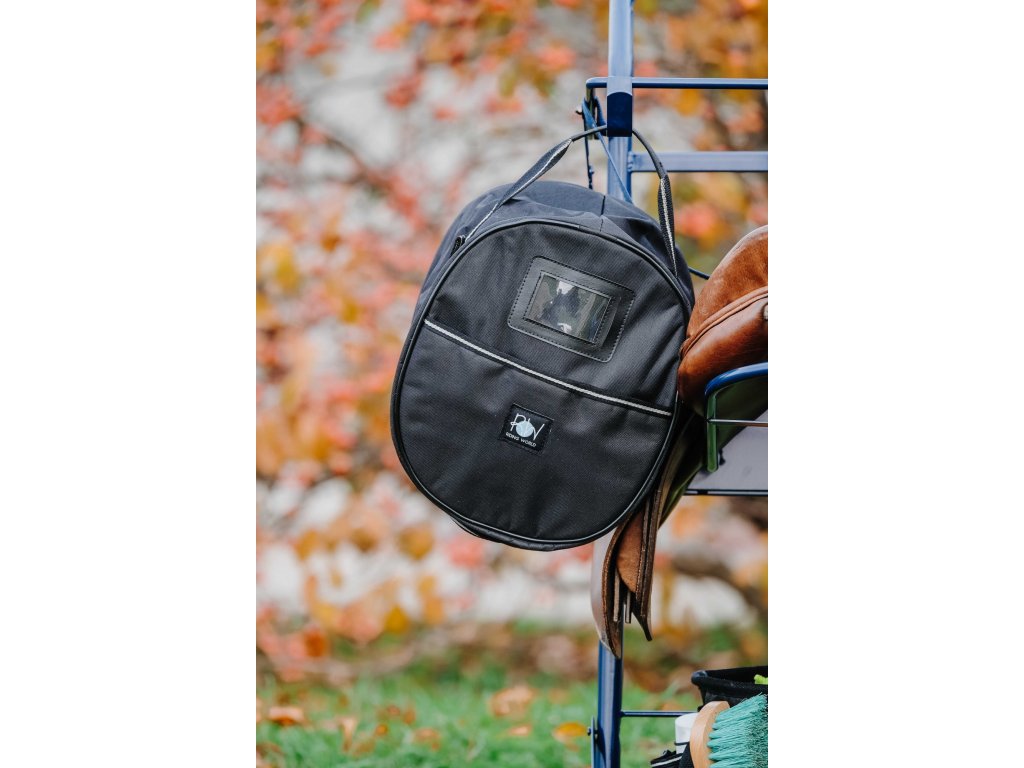 Praktická a odolná taška pre bezpečné prenášanie a ochranu jazdeckej prilby. Taška je vyrobená z nylonu, ktorý je ľahký, pevný a odolný proti znečisteniu. Má zapínanie na zips, ktoré umožňuje ľahký prístup k prilbe. Pevná zosilnená rukoväť zaisťuje komfortné a bezpečné nosenie.