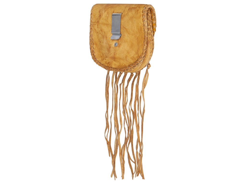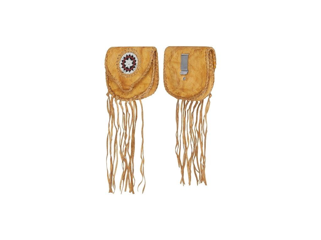 Malá praktická taštička na opasok. Vyrobená z kvalitného koženého materiálu s farebnými akcentmi a strapcami. Vzhľad tašky je doplnený indiánskym motívom a štýlovým šnurovaním. Jednoduché upevnenie. Rozmery: výška: 13 cm, šírka: 13 cm, hĺbka: 2,5 cm.
