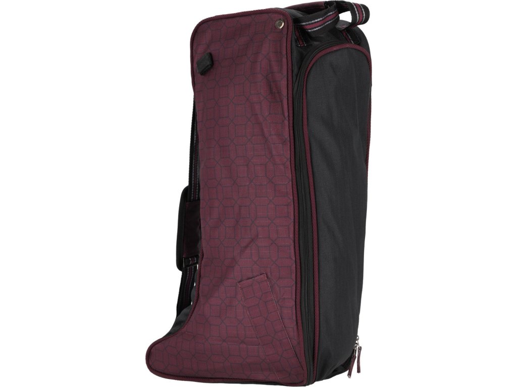 Kvalitná taška na vysoké jazdecké čižmy, ktorá slúži ako skvelá ochrana pred nečistotami a poškodením. Je vyrobená z vodoodpudivého materiálu s malými vetracími otvormi, ktoré odvádzajú vlhkosť. Ďalej je vybavená malým vreckom na drobnosti a veľkým vreckom na čižmy. Vrecko na topánky má vnútri priehradku, ktorá zabraňuje odieraniu topánok o seba. Obe vrecká majú zapínanie na zips. Taška ponúka tiež vrecko na menovku, dve rukoväte a odnímateľný ramenný popruh s mäkkou podšívkou.