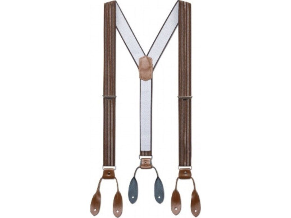 Westernové traky s koženými pútkami. Traky sa dajú ľahko pripevniť k nohaviciam, ktoré sú vybavené gombíkmi. Typ "Y".