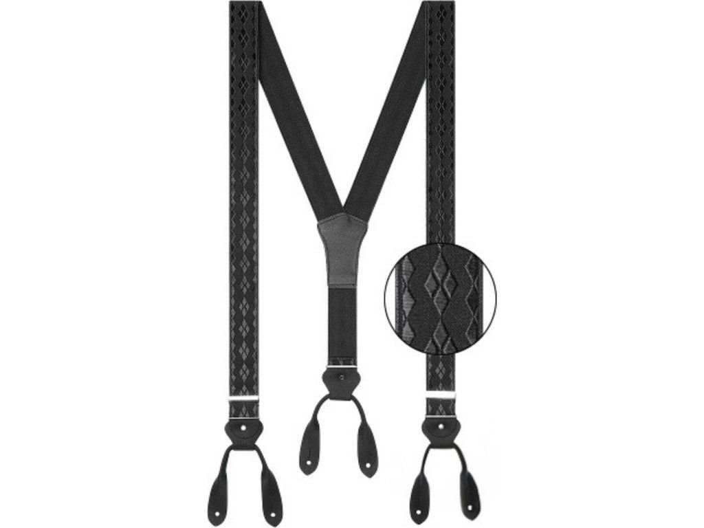 Westernové traky s koženými pútkami. Traky sa dajú ľahko pripevniť k nohaviciam, ktoré sú vybavené gombíkmi. Typ "Y".