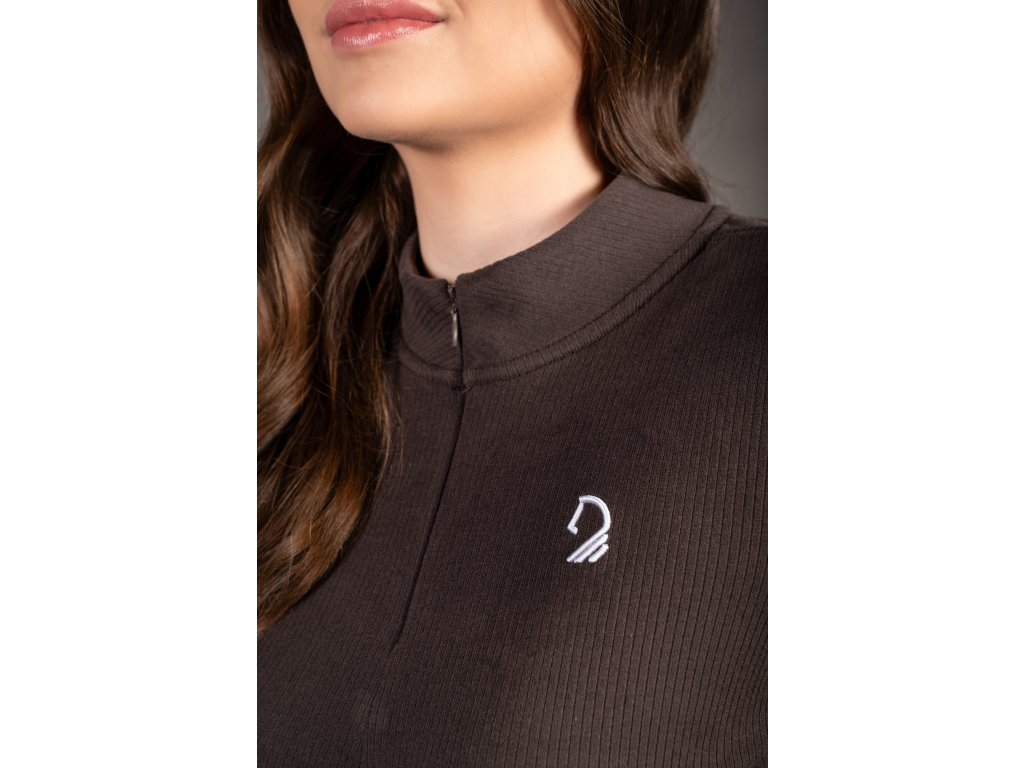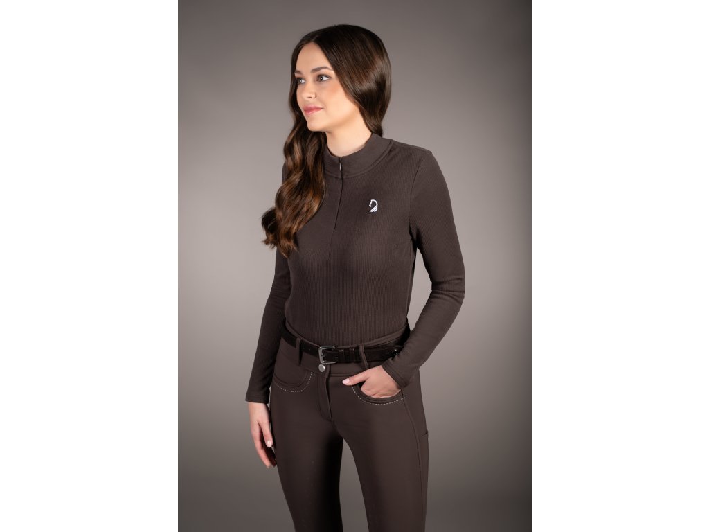 Elegantné dámske tričko s dlhým rukávom spája športový vzhľad s maximálnym pohodlím. Priedušný a elastický materiál sa dokonale prispôsobí postave a umožňuje voľnosť pohybu. Tričko má priliehavý strih a je vyrobené z mäkkého, rebrovaného materiálu príjemného na dotyk. Praktický zips pri golieri umožňuje jednoduché obliekanie a vyzliekanie. Zdobené je decentnou výšivkou. Možno prať v práčke pri 30 °C.