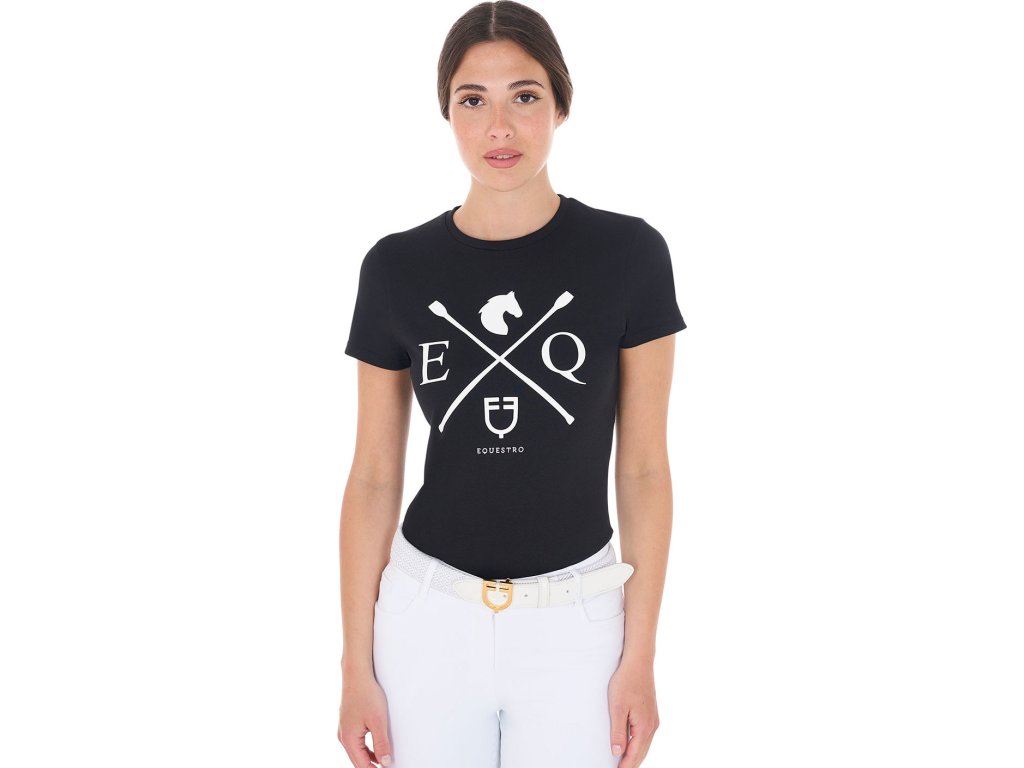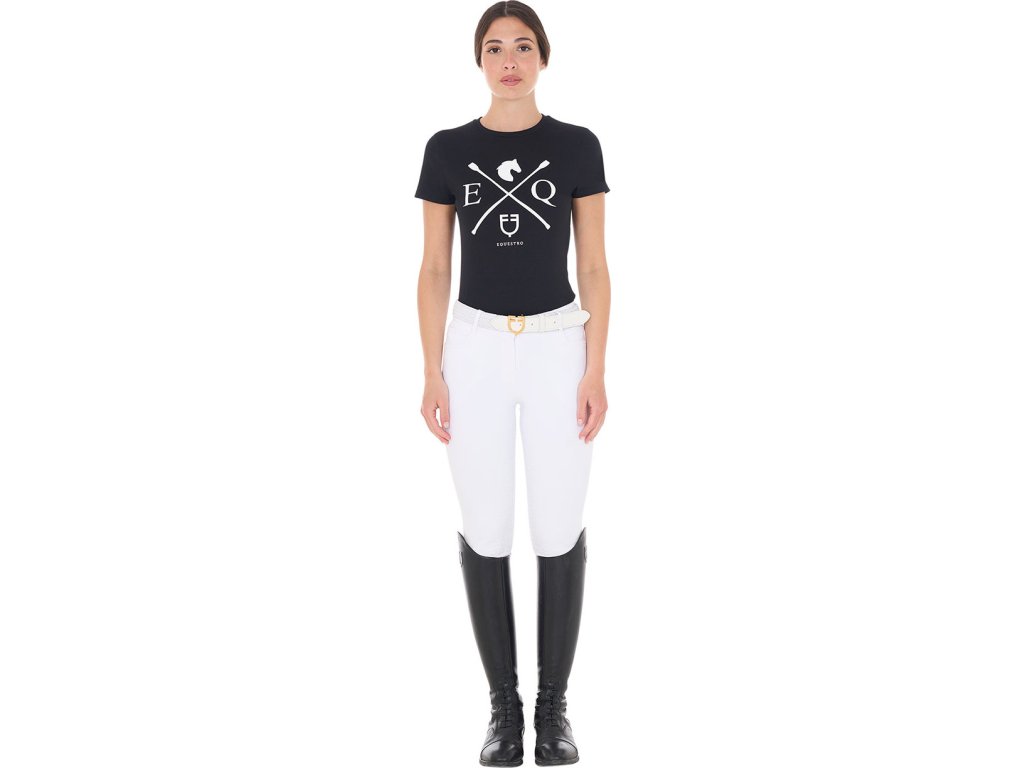 Dámske tričko s priliehavým strihom vyrobené z mäkkého bavlneného materiálu, ktorý zaisťuje maximálnu voľnosť pohybu a výnimočné pohodlie. Bavlna je cenená pre svoju schopnosť absorbovať vlhkosť, čo z nej robí skvelú voľbu pre jazdecký šport, kde je kľúčový komfort a priedušnosť. Minimalistickú eleganciu trička dopĺňa potlač na hrudi, ozdobená logom a nápisom Equestro.