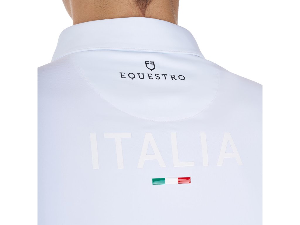 Elegantné pánske tričko na preteky Equestro X FISE s priliehavým strihom je vyrobené z priedušného a elastického technického materiálu, ktorý poskytuje ochranu pred UV žiarením. Spája praktické vlastnosti s vycibreným štýlom. Perfektne sedí, jemne kopíruje pás a elegantne zvýrazňuje siluetu. Tričko má dlhé rukávy, bavlnený stojačik a zapínanie na gombíky.