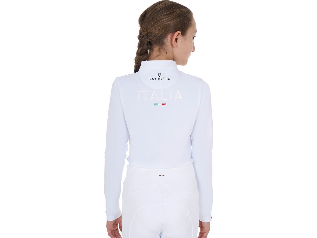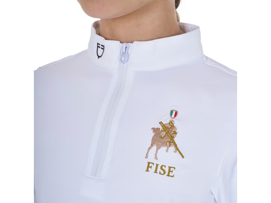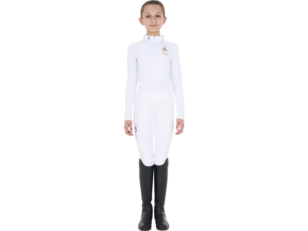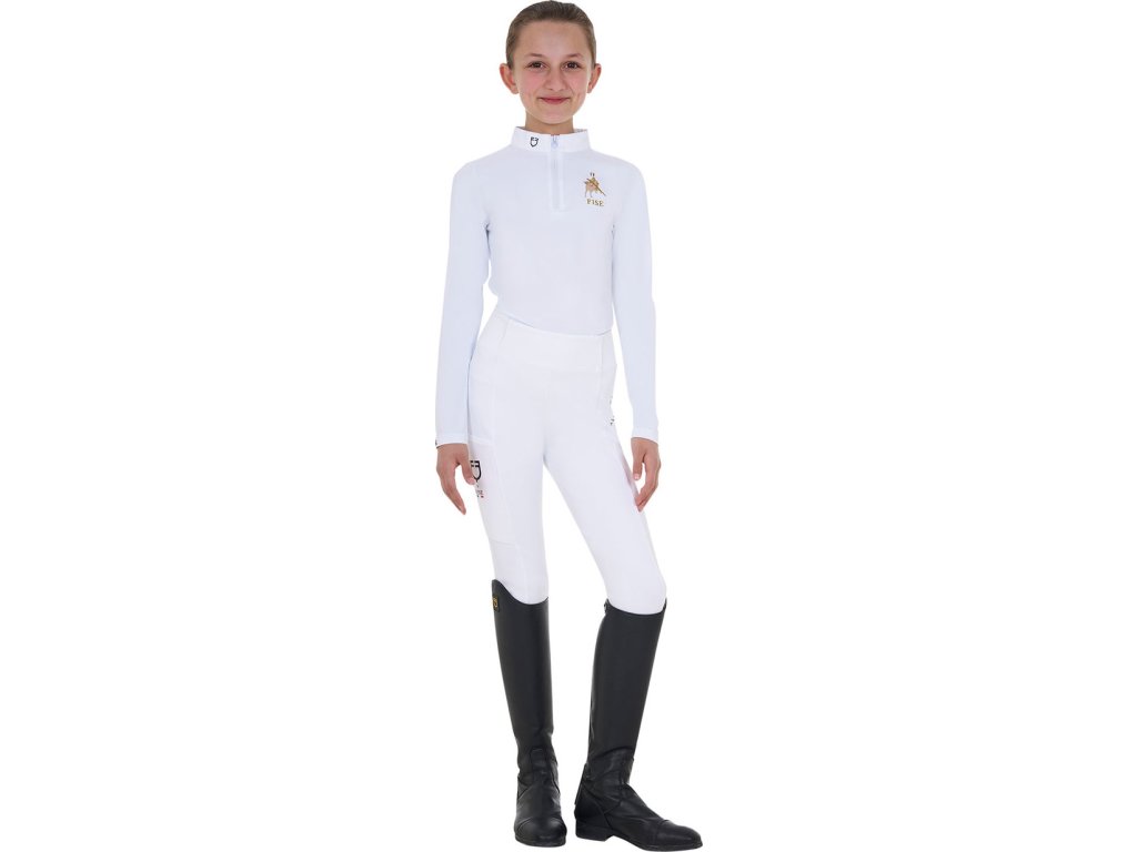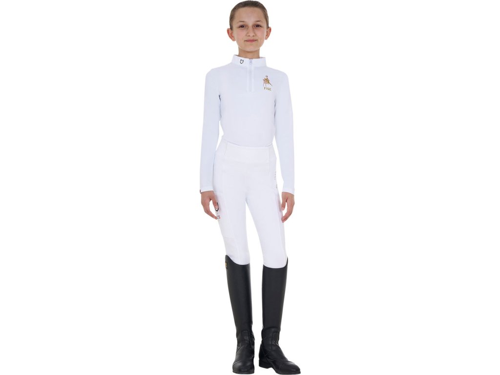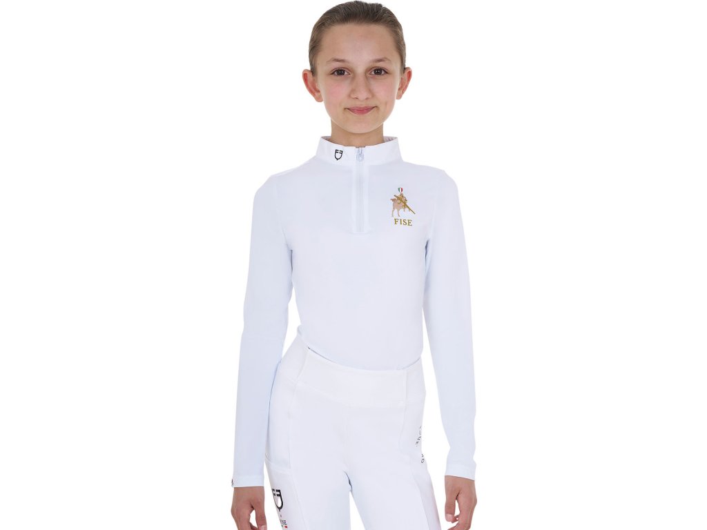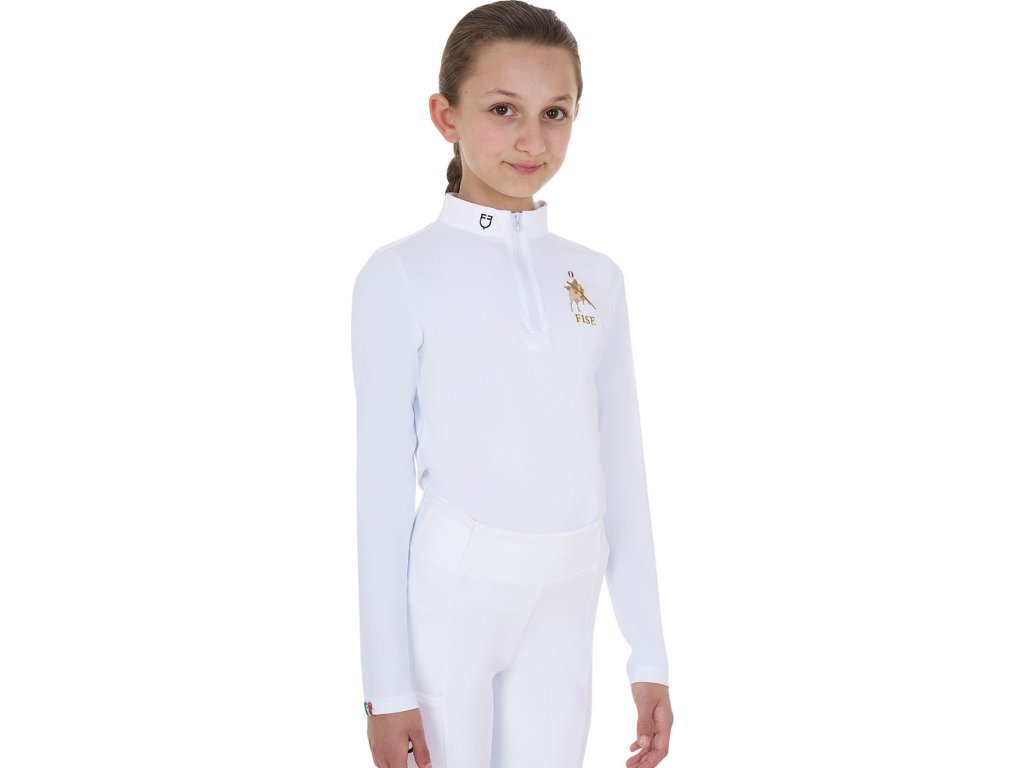 Tričko Competition Polo X Fise Equestro, s dlhým rukávom, so zipsom, detské, biele