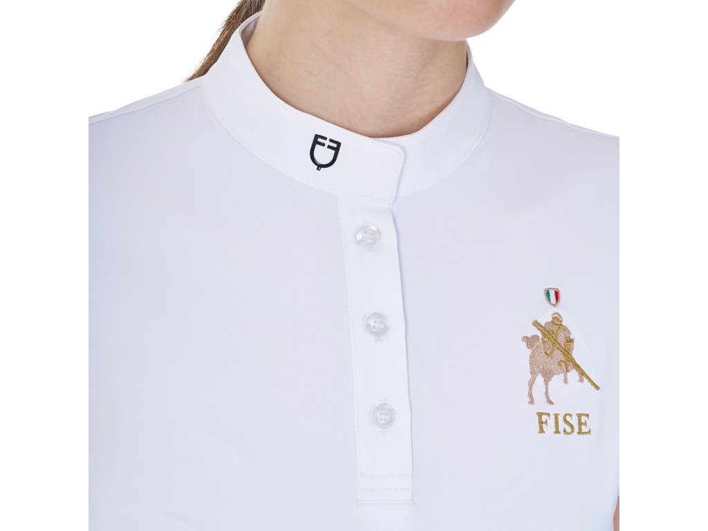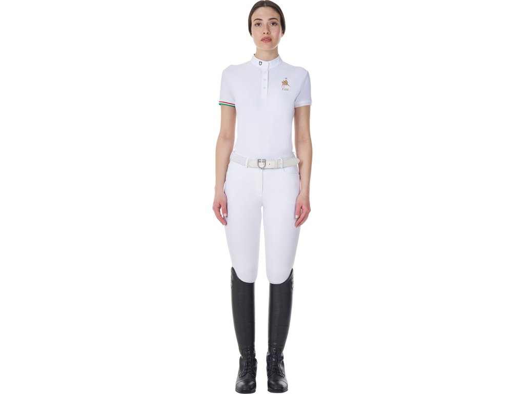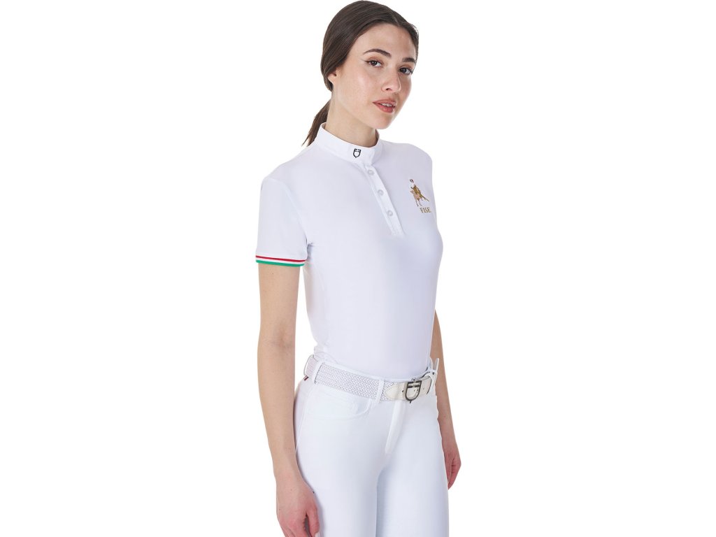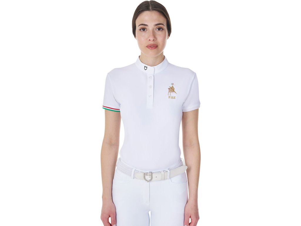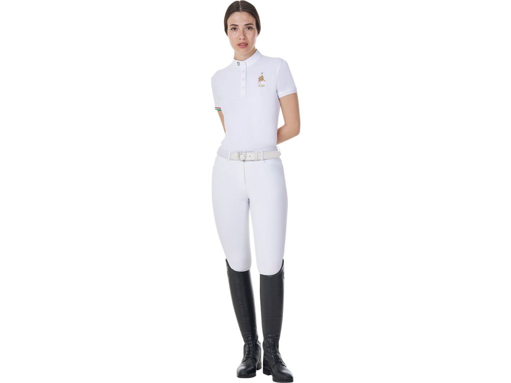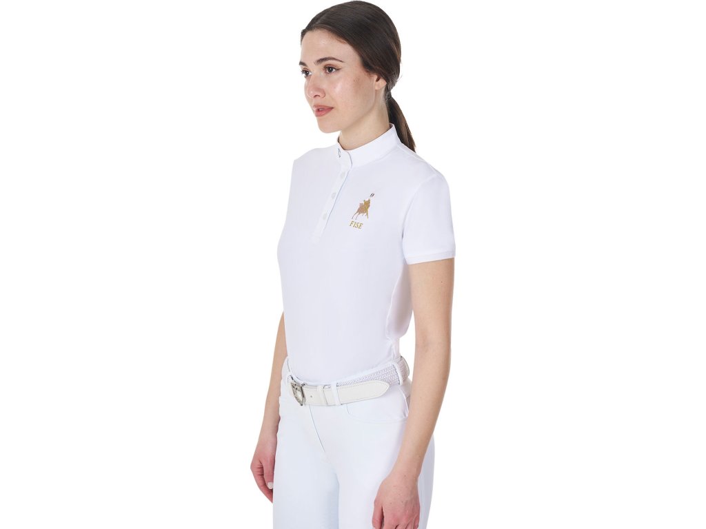 Tričko Competition Polo X Fise Equestro, s krátkym rukávom, s gombíkmi, dámske, biele